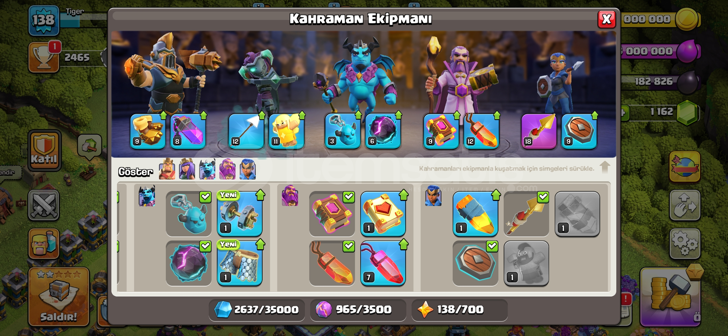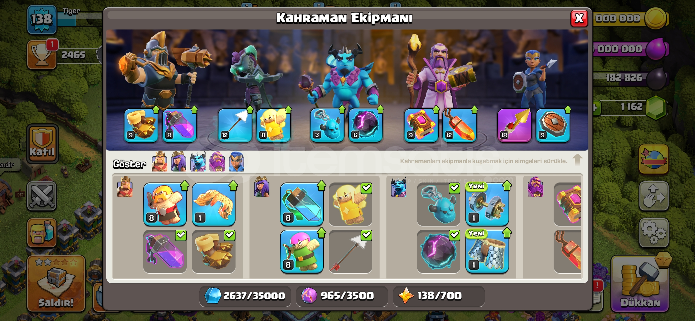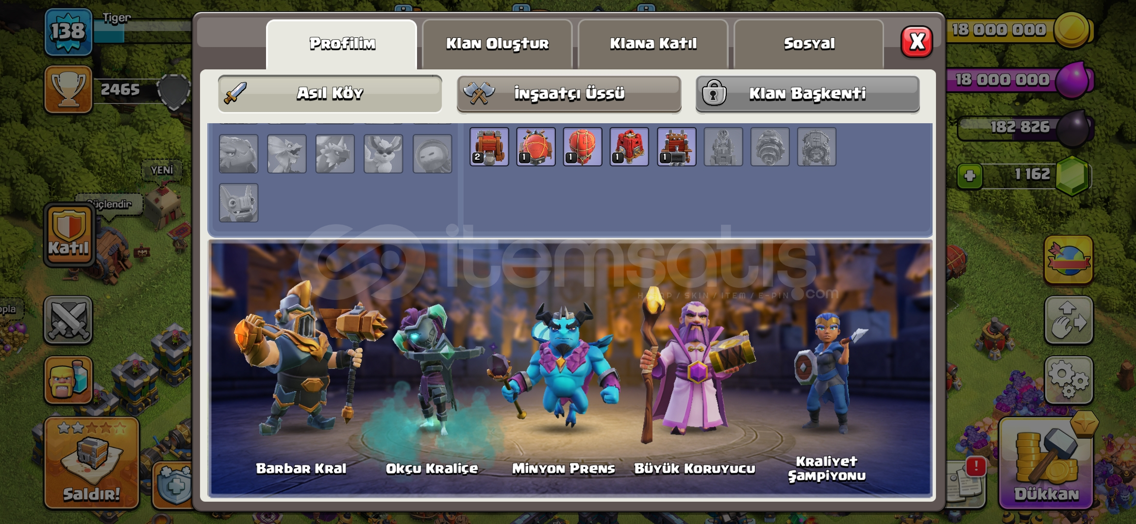 Ücretsiz isim değiştirme var138 Level4640 Max Kupa1239 Taş270 Madalya birsürü takviye var, kısa sürede rahatça 13 maxlanirEmek hesabı ( Parada yatırmıstım)Kostümler varSupercell Id ile tamamen size verilecektir