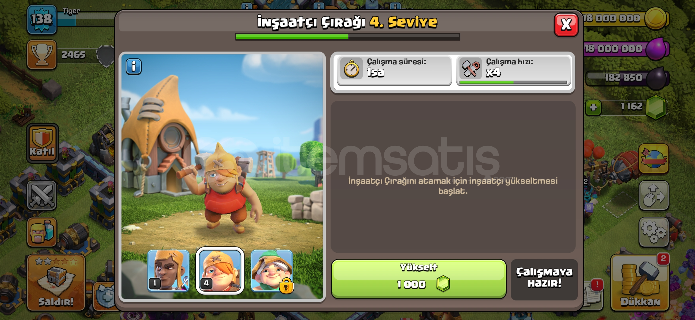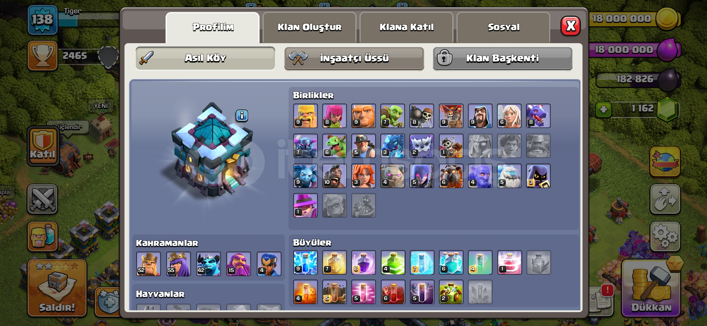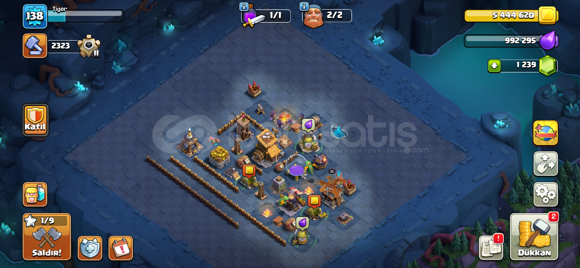 Ücretsiz isim değiştirme var138 Level4640 Max Kupa1239 Taş270 Madalya birsürü takviye var, kısa sürede rahatça 13 maxlanirEmek hesabı ( Parada yatırmıstım)Kostümler varSupercell Id ile tamamen size verilecektir
