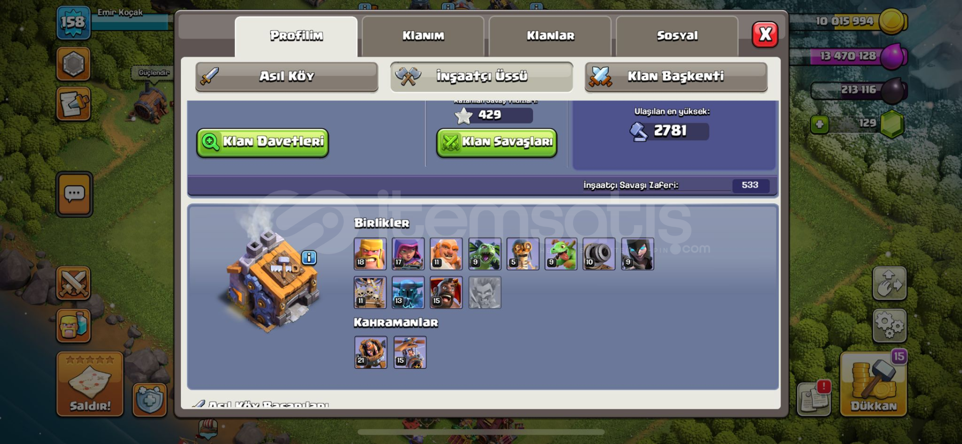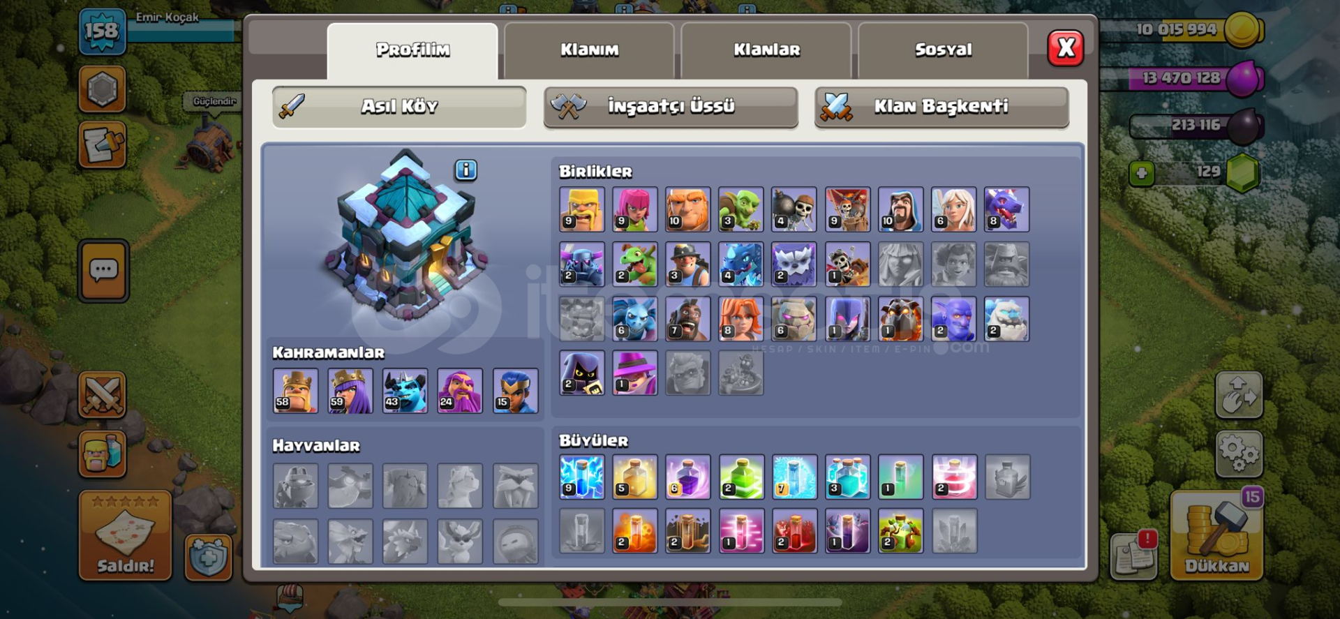 Mail sağlam kendi mailinizi ekleyeceğiz. TH13 Full 14e geçmelik hesap 6 seviye klan ile birlikte devredilecektir.Geriye kalan bilgiler fotoğraflarda mevcuttur.Cüzi miktarda pazarlıkta anlaşılabilirİyi alışverişler:)