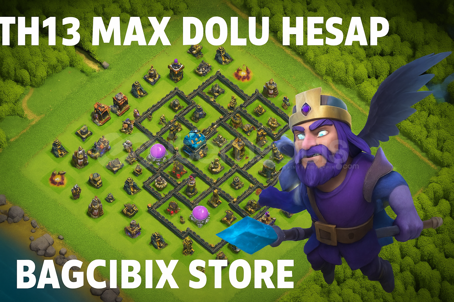 Satıcı: Bagubix Store🏰 Köy Binası: 13⚔️ Kahramanlar:Barbar Kral: 75Okçu Kraliçe: 75Büyük Koruyucu: 50🧙‍♂️ Minyon Prens: Açık ve aktif (uçan, karanlık büyü saldırısı yapar)💎 Elmas: 39💰 Kaynaklar: Full dolu💜 Karanlık İksir: 100K+📱 Supercell ID: Bağlı (güvenli devredilir)🏆 Kupa: (buraya senin ger&c...