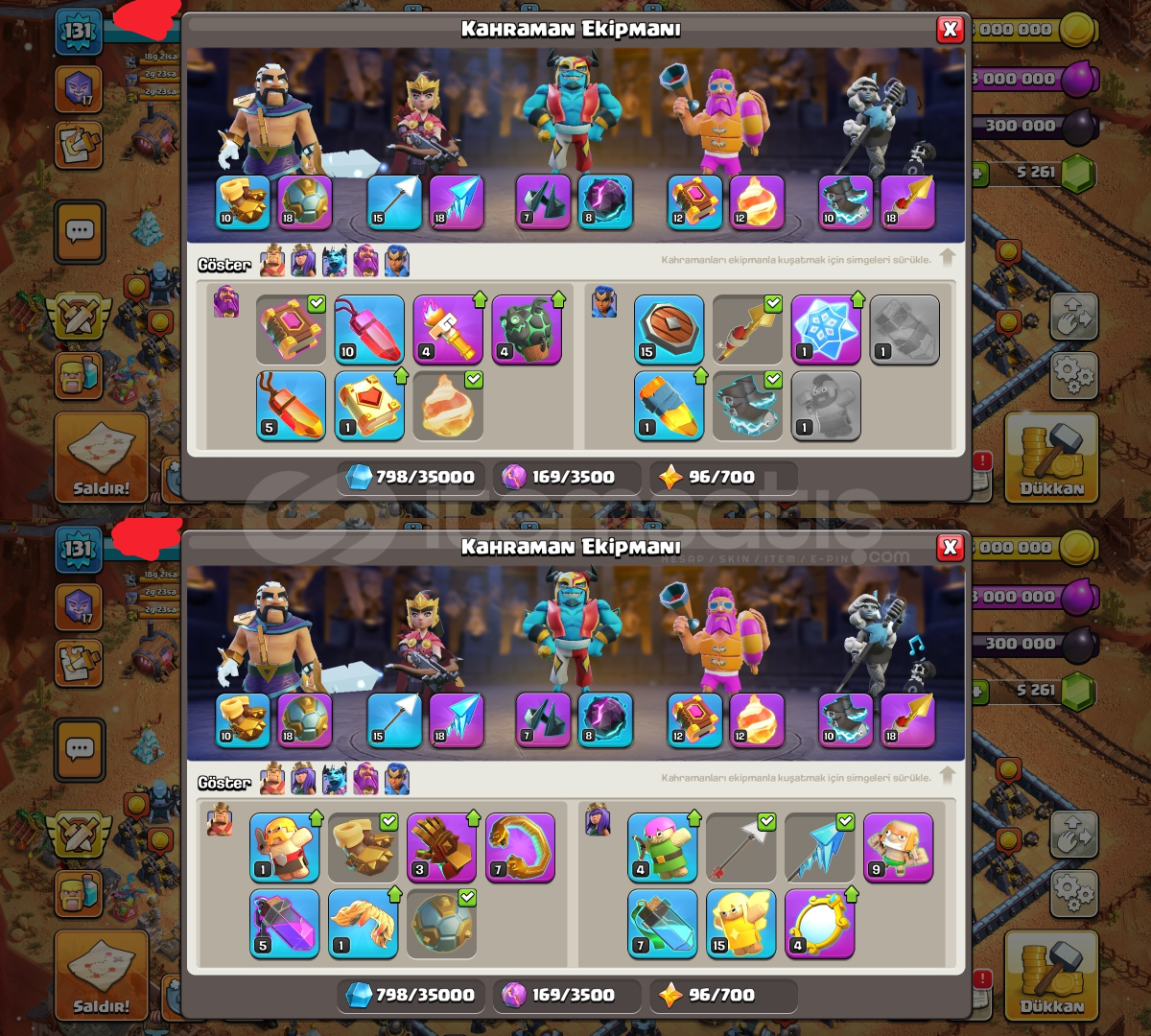 Hesabın ID: #GUQ2QUULQ BakabilirsinizHesapta duvarlar, laboratuvar, bütün savunmalar ve kahramanlar th13 e göre fulldür.Demirci de ki itemler normal seviyededir.Hesapta 3 efsanevi olmak üzere 9 kostüm bulunmaktadır.Göründüğü üzere 5000 üzeri elmas vardır.Hesapta ID bağlıdır ve telefon koruması aktiftir devir edilir.
