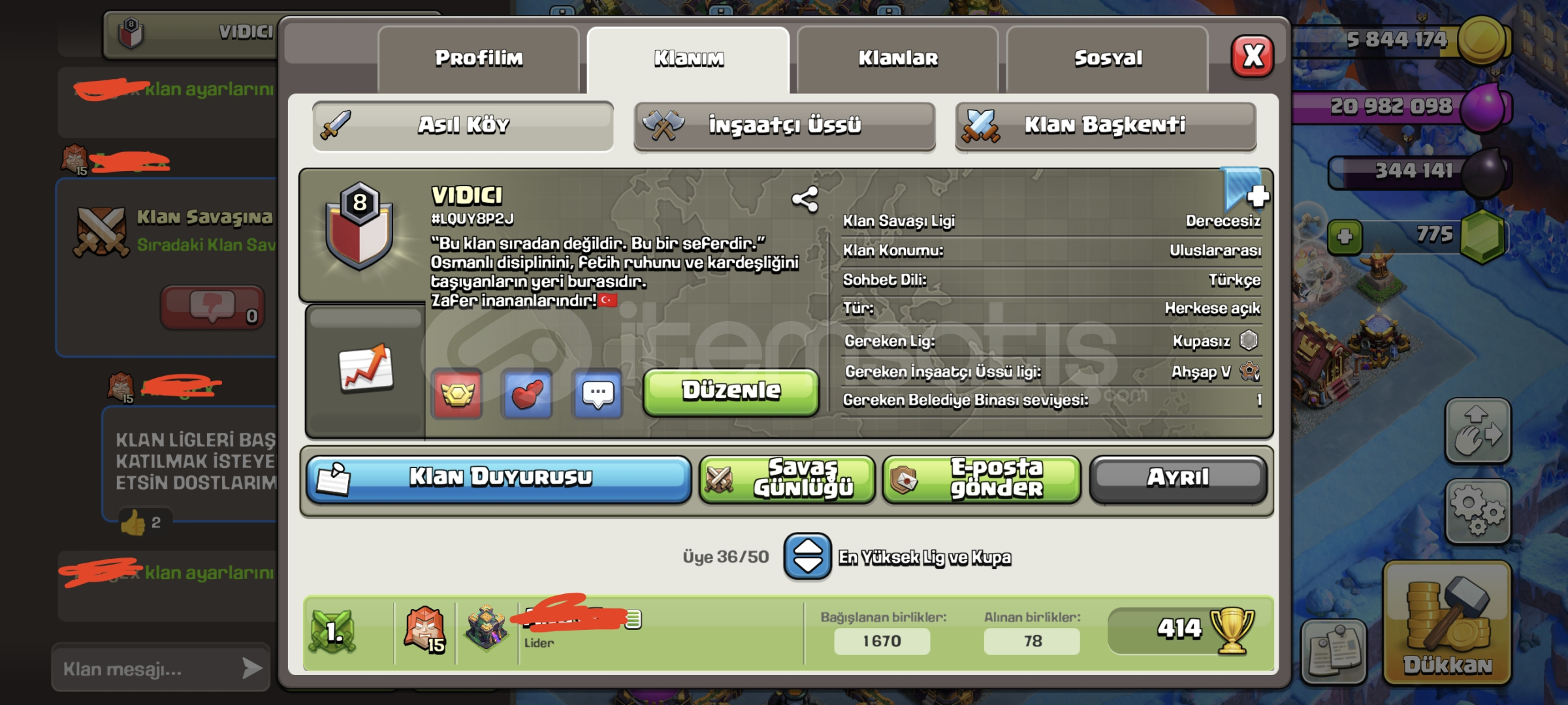 - Klan başkenti 7 seviyedir 8 e az kalmıştır