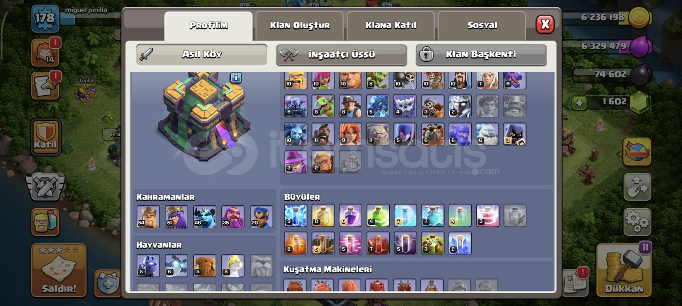 Hesaba detaylıca bakmak için: #2PLPCYUJVHesaplar asla geri çekilmez!Hesap koruması aktif değildir!Yeni güncelleme sebebiyle sezon geçişlerinde CLASH ROYALE HESAPLARINDA kupa kaybı yaşanabiliyor bilginize.Sipariş Sonrasında oluşacak sonular için kalıcı destek!"Neden beni tercih etmelisiniz?"+660 Başarılı işlem.Yüksek müşteri memnuniyeti.Supercell oyunu içinde 500+ Faz...