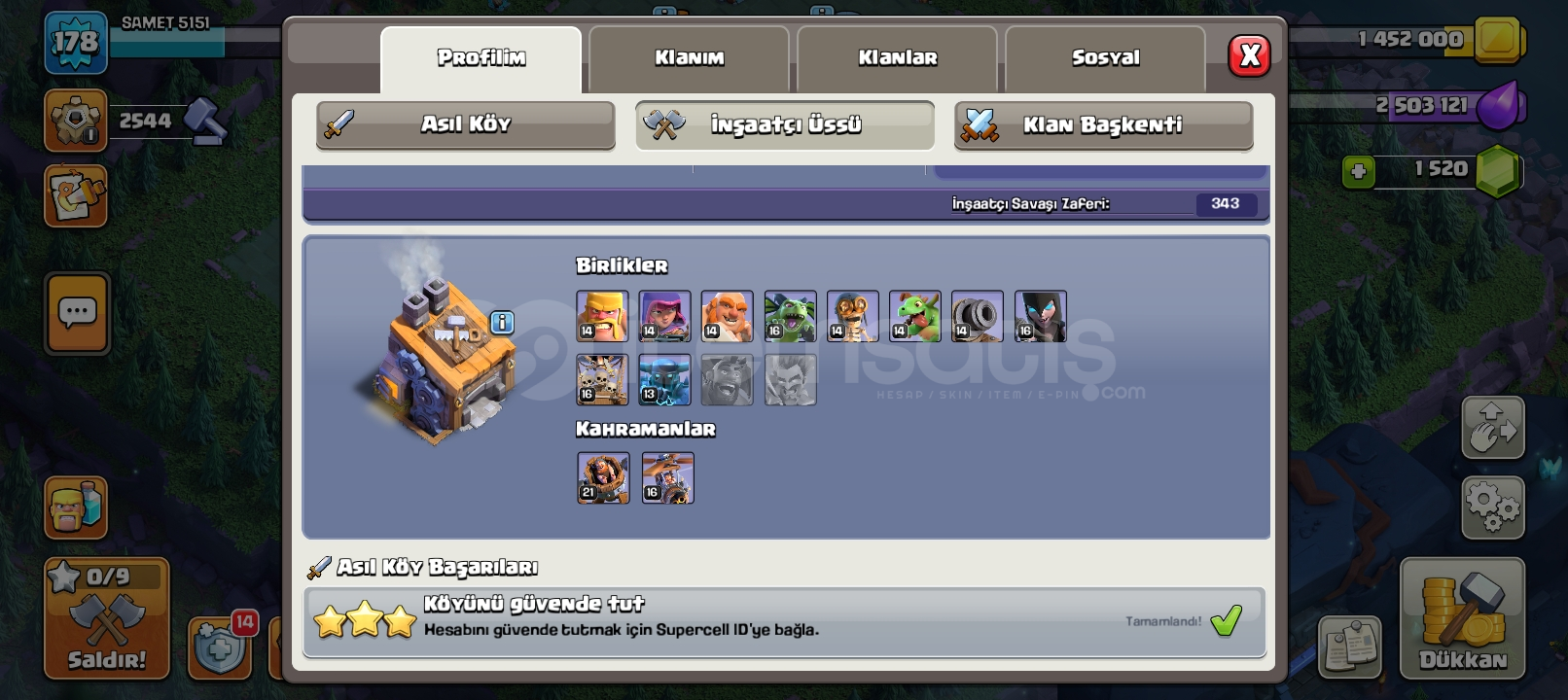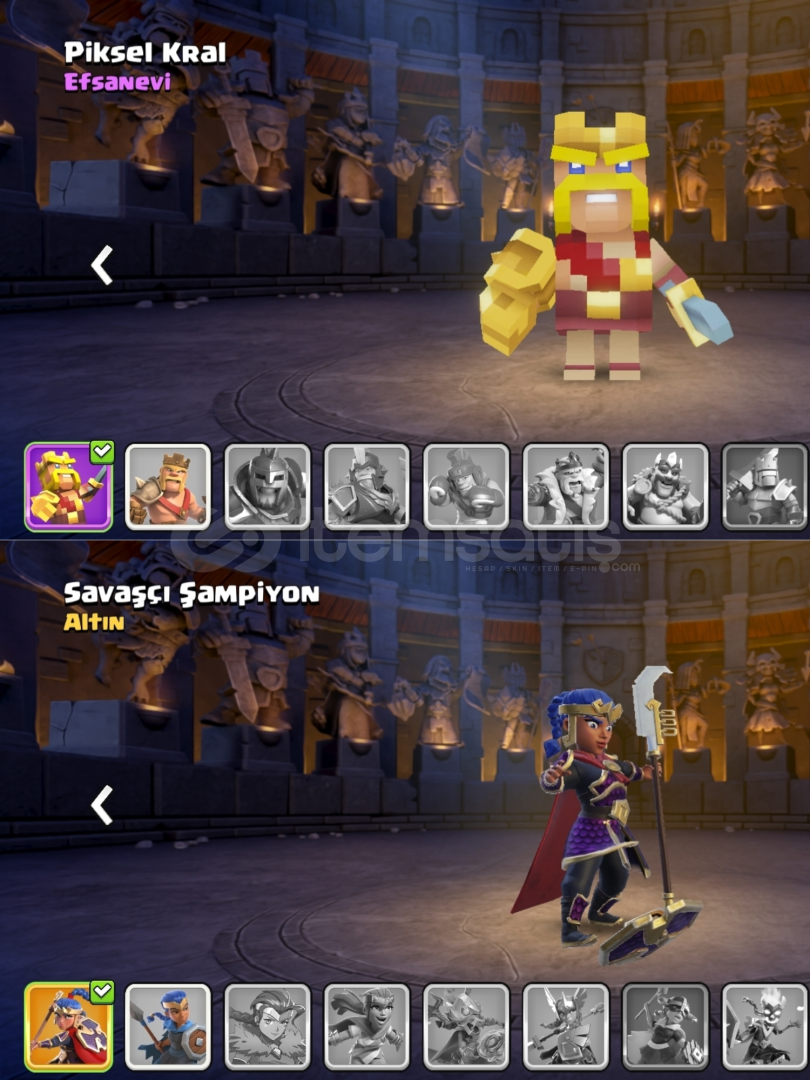 Kral ve Şampiyon da 1 Kostüm vardır.Demircisi Sağlam.1500+ Yeşil Taş, 669 Lig Madalyası vardır.Hesap Koruması kapalı, E-postası temizdir, direkt e-posta ile teslim edeceğim.