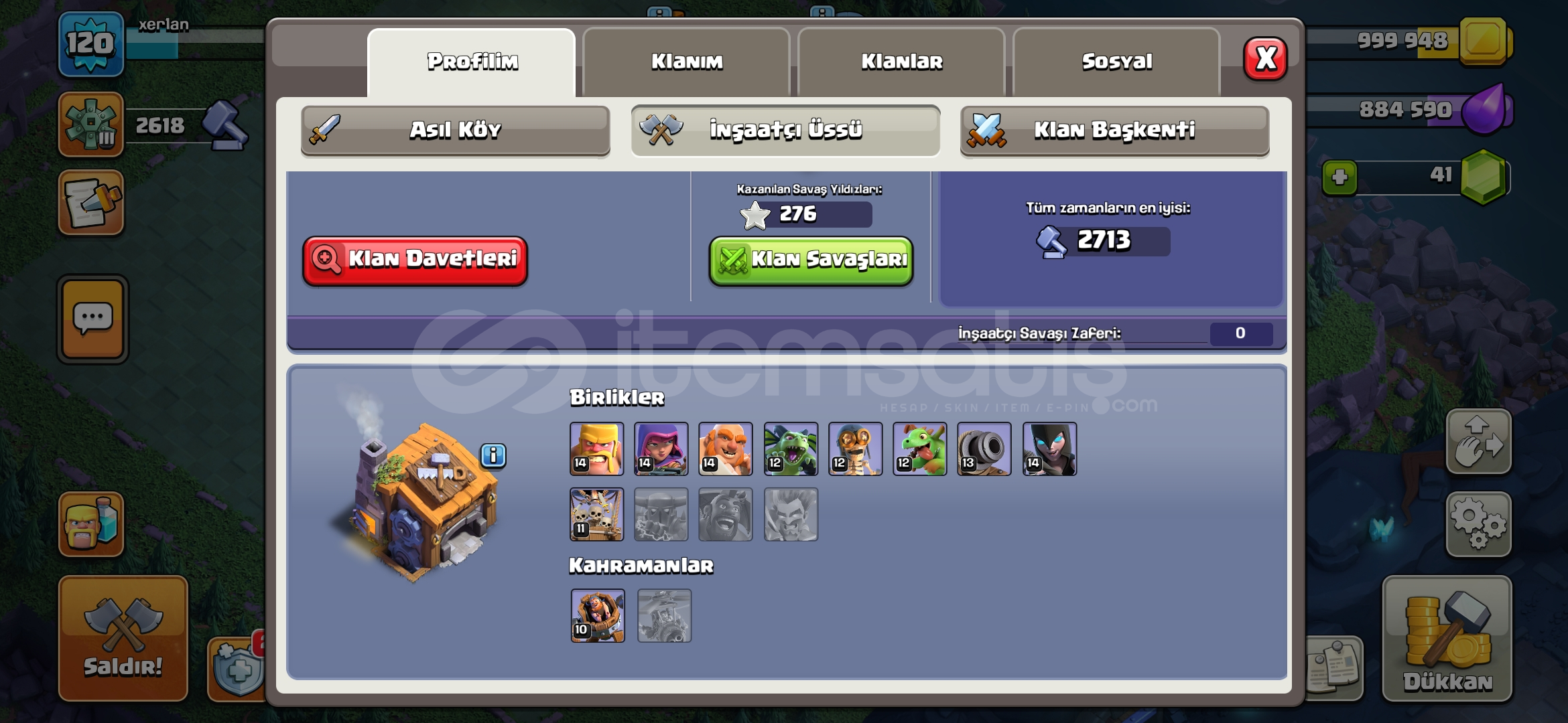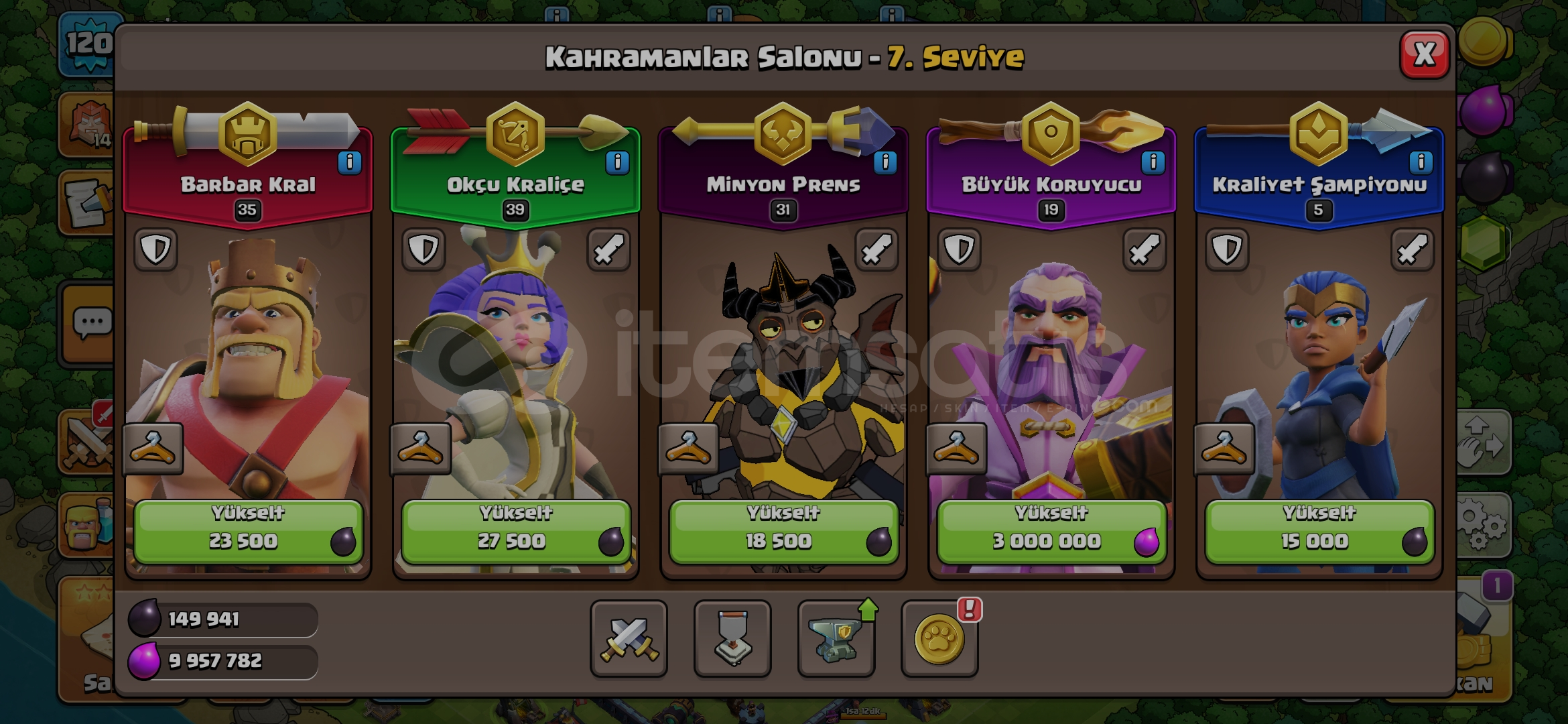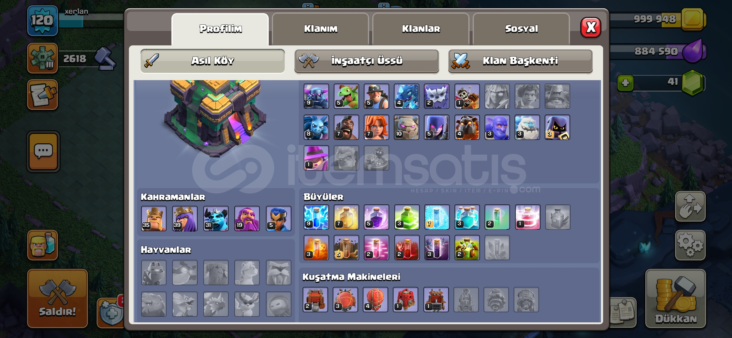 MERHABA KENDİ EMEĞİMLE KASTIĞIM 120 LEVELLİK 14. SEVİYE BELEDİYE BİNALIK 3 TANE KOSTÜMLÜK (SATRANÇLI KRALİÇE, ALTIN BİLETTEN MİNYON PRENS VE BUZUL KRALİÇE VAR) MEVCUT TAŞ SAYISI 500DEN FAZLA 5 İNŞAATÇILI DİĞER KÖYÜ DE ORTALAMA Bİ ŞEKİLDE KASILMIŞ 7. LEVEL BELEDİYELİ UYGUN FİYATTAN SATIYORUM.