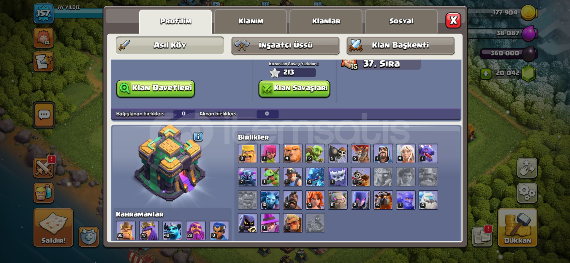 Şifre ve mail satın alımdan sonra satıcı tarafından size iletilir.Şifre değişikliği yapılabilir. Hesap BB14 maxa yakındır. 20K taş bulunur. Duvarlar Max. 157 Level