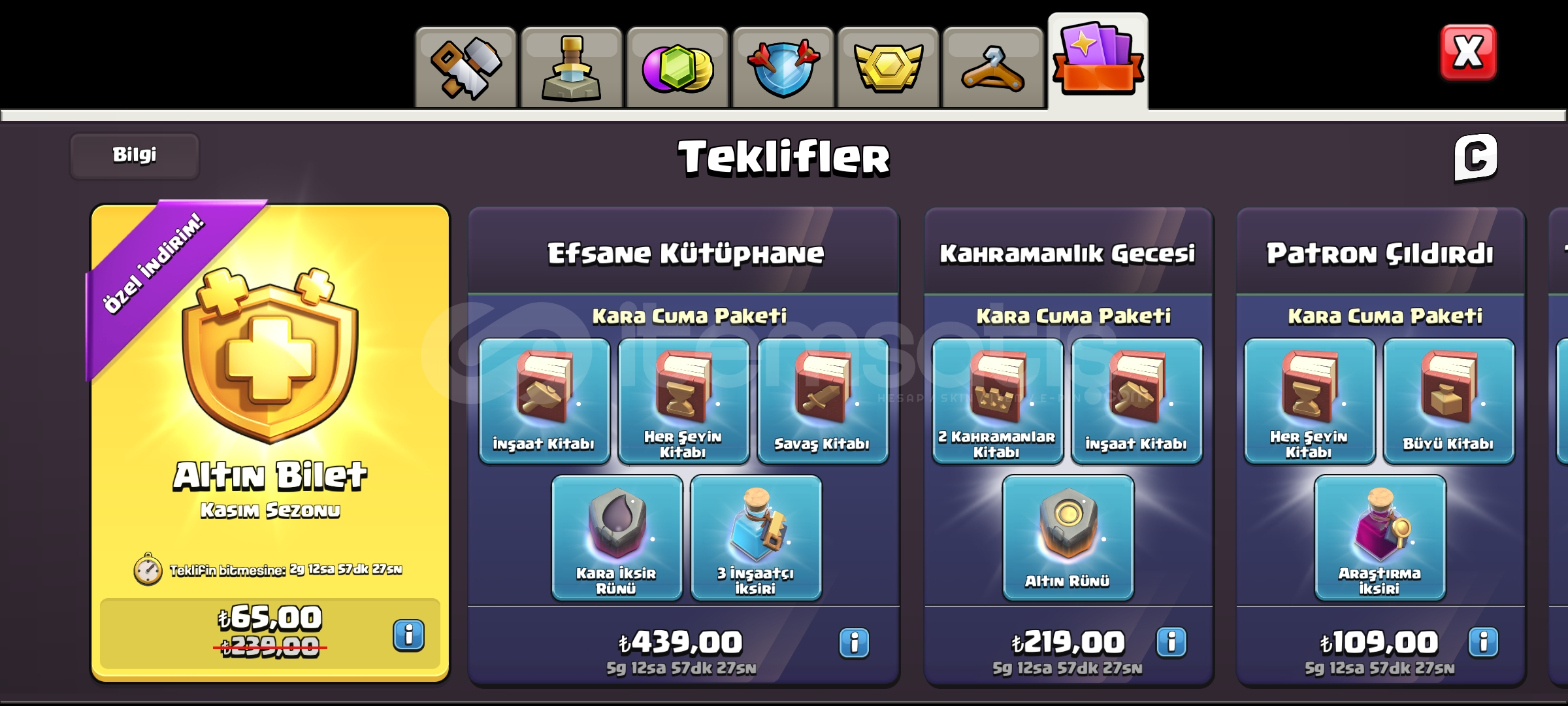 Hesabım keyfekederdir güzel hesaptırArka plan yoktur8 adet kostüm vardırYan köy olarak emsallerinin en iyisidir.Süpercell ID baglidir alan kişinin mailine bağlanıp teslim edilecektir isim değiştirme 500 elmastir Hayırlı uğurlu olsunİçinde 500 elmas varAltın bilet 65 tldir
