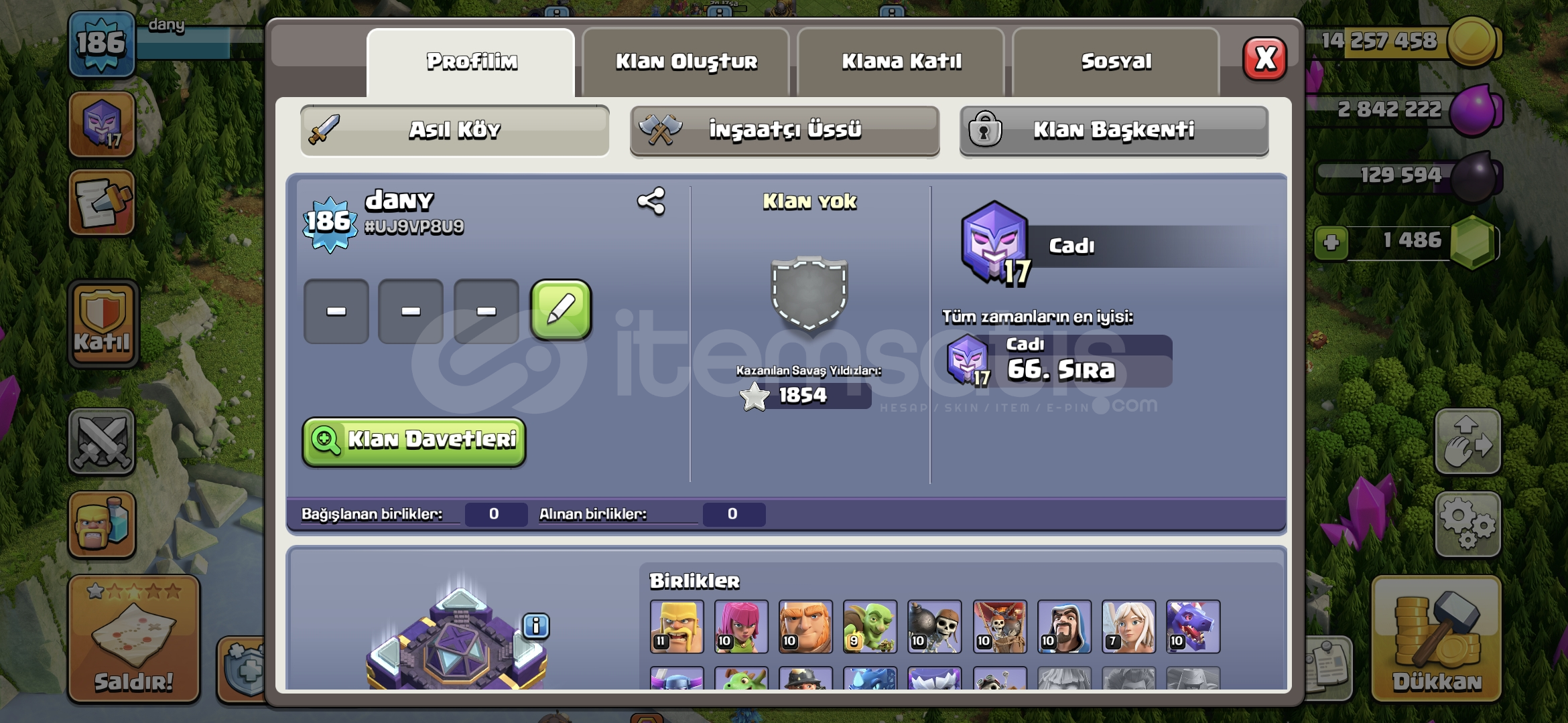 TH15 MAX+ * 1 KOSTÜM + EKİPMAN * | 186 LEVEL-ID : #UJ9VP8U9-DEĞERLİ OYUNCULAR, CLASH OF CLASH DÜNYASINDA SİZE EN GÜVENLİ, HIZLI VE UYGUN FİYATLI HESAPLARI SUNMAK İÇİN BURADAYIZ. HESAPLAR, HEDİYELER VE ÖZEL DESTEK PAKETLERİYLE TAM DONANIMLI OYUN DENEYİMİ SAĞLIYOR. YILLARIN TECRÜBESİYLE ORİJİNAL VE GARANTİLİ ÜRÜNLER SUNMANIN GURURUNU YAŞIYORUZ.-BİZİ SE&...