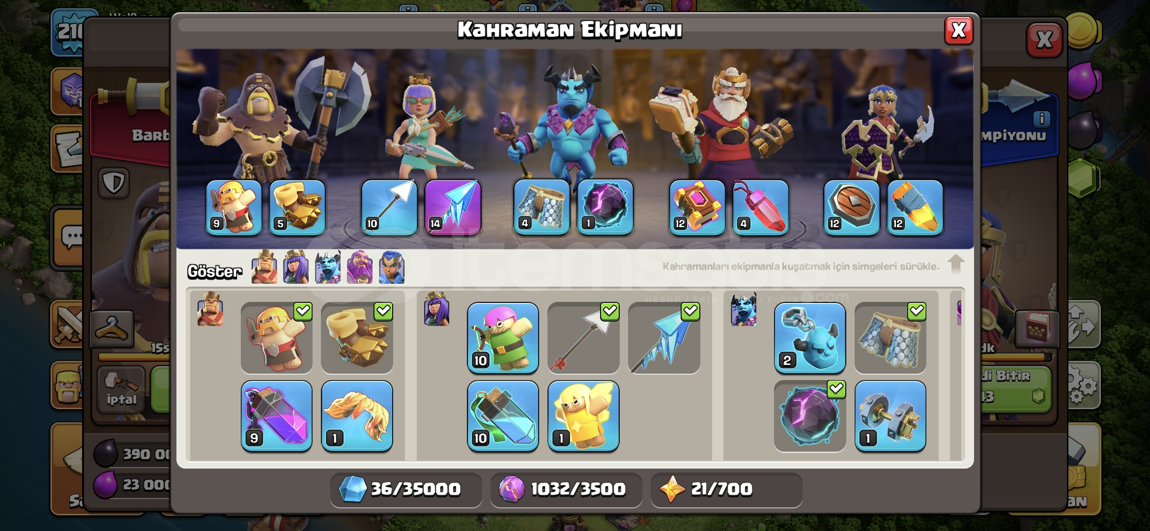 TH15 MAX+ * 11 KOSTÜM + EKİPMAN * 216 LEVEL