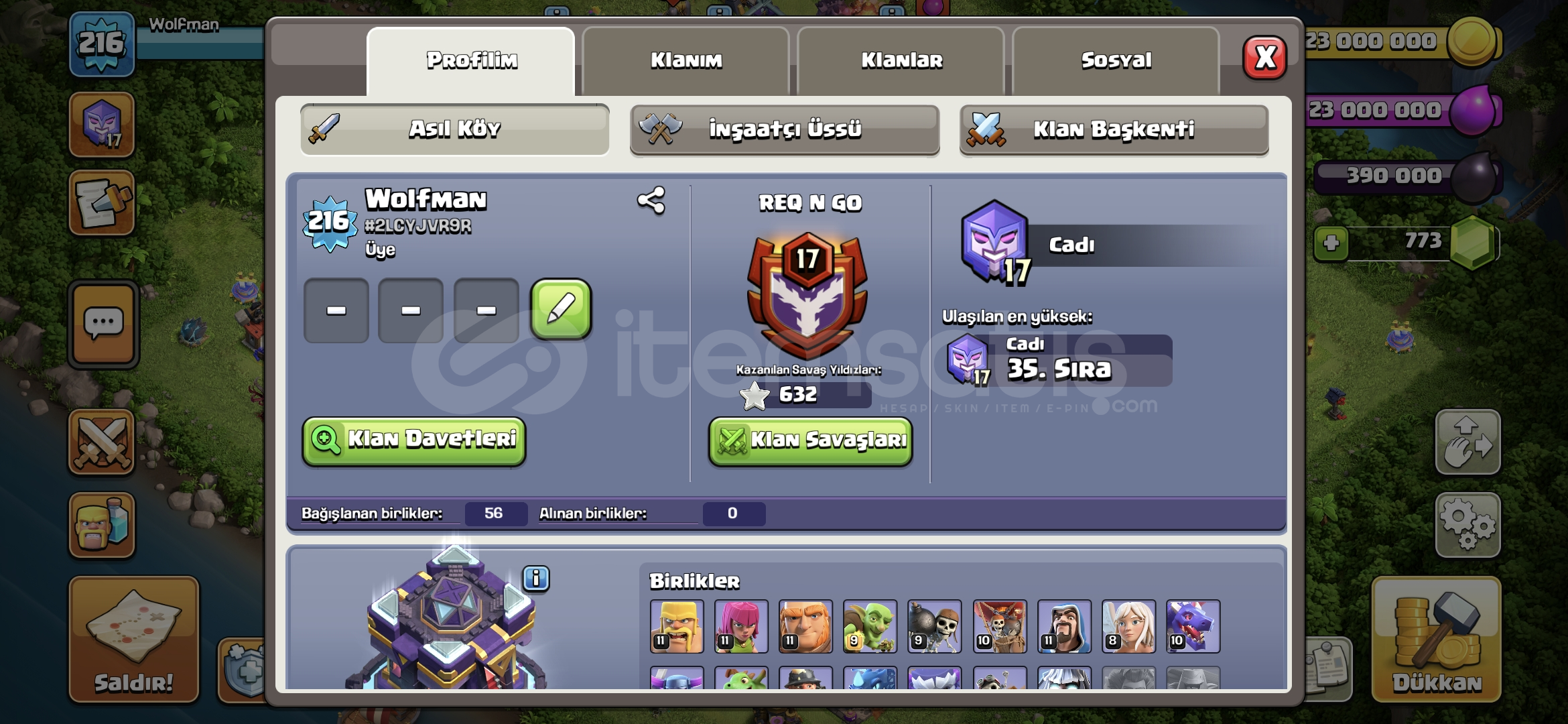 TH15 MAX+ * 11 KOSTÜM + EKİPMAN * 216 LEVEL-ID : #2LCYJVR9RVİDEO : https://youtu.be/F8hiYxqAiKg?si=aCIIfM8UcyG-xhHL-DEĞERLİ OYUNCULAR, CLASH OF CLASH DÜNYASINDA SİZE EN GÜVENLİ, HIZLI VE UYGUN FİYATLI HESAPLARI SUNMAK İÇİN BURADAYIZ. HESAPLAR, HEDİYELER VE ÖZEL DESTEK PAKETLERİYLE TAM DONANIMLI OYUN DENEYİMİ SAĞLIYOR. YILLARIN TECRÜBESİYLE ORİJİNAL VE GARANTİLİ ÜR&U...