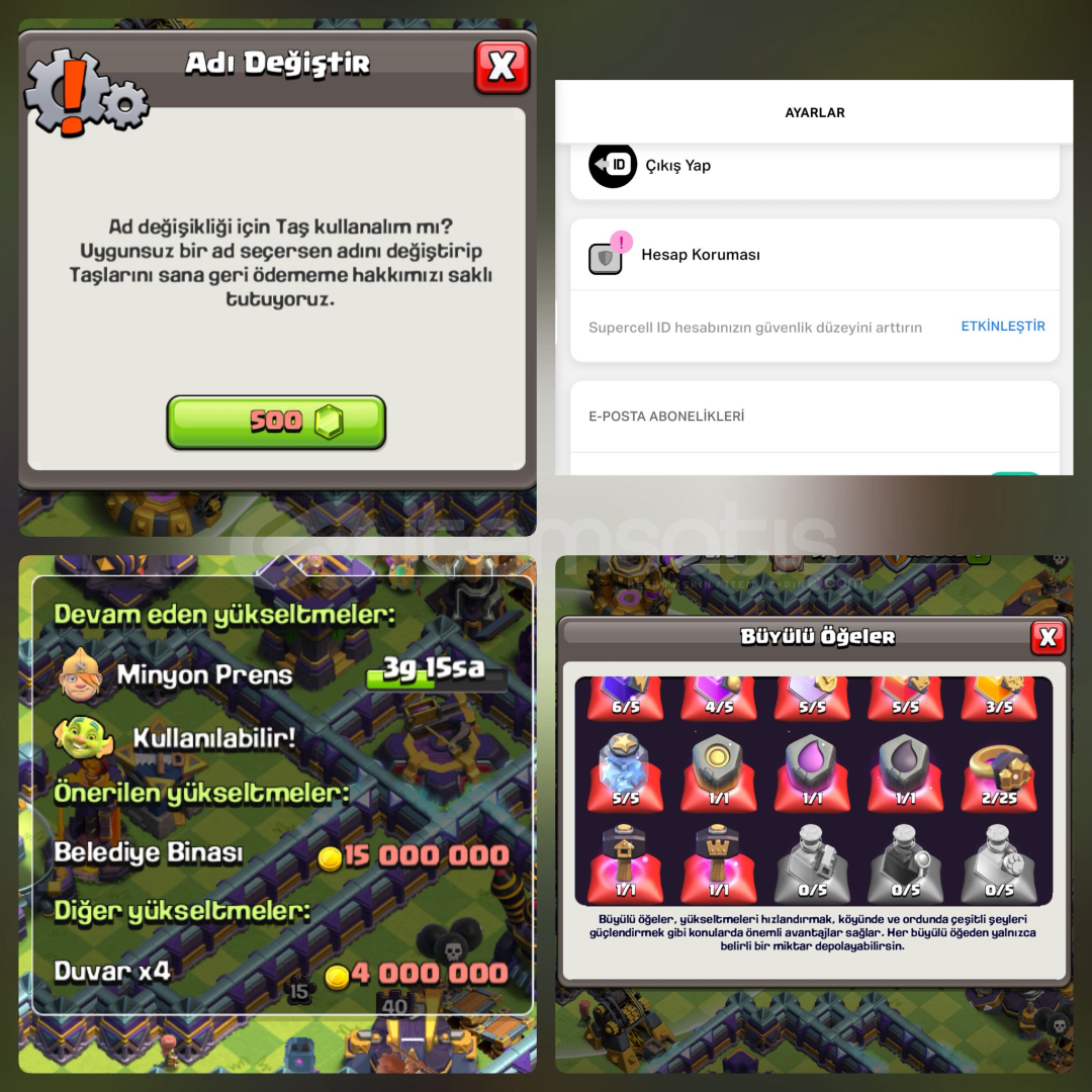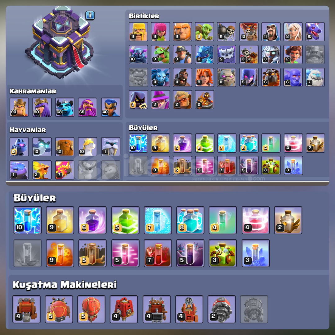 • Belediye Binası: TH15• Seviye: 215• 2 Adet Arka Plan• 12 Kahraman Kostümü | 3 Efsanevi• Supercell ID: Bağlı• Telefon Koruması Bağlı Değildir.• İlk Sahibinden Alındı.• Teslimat: Boş mail ile teslim edilir.• 15 gün içinde kendi mailinize aktarabilirsiniz.✅ Garanti Bilgilendirme• Hesaplarımız 7 gün mağaza garantisi altındad&#...