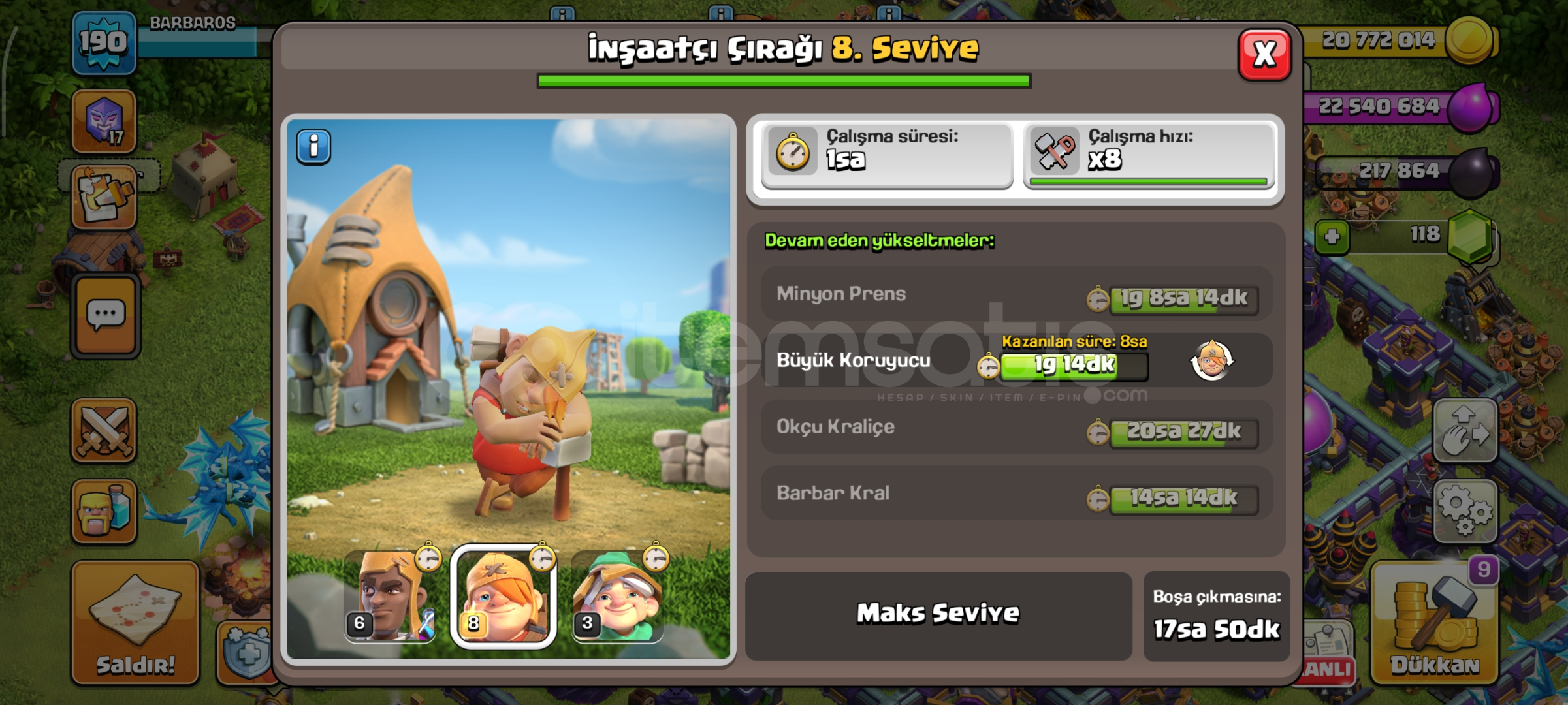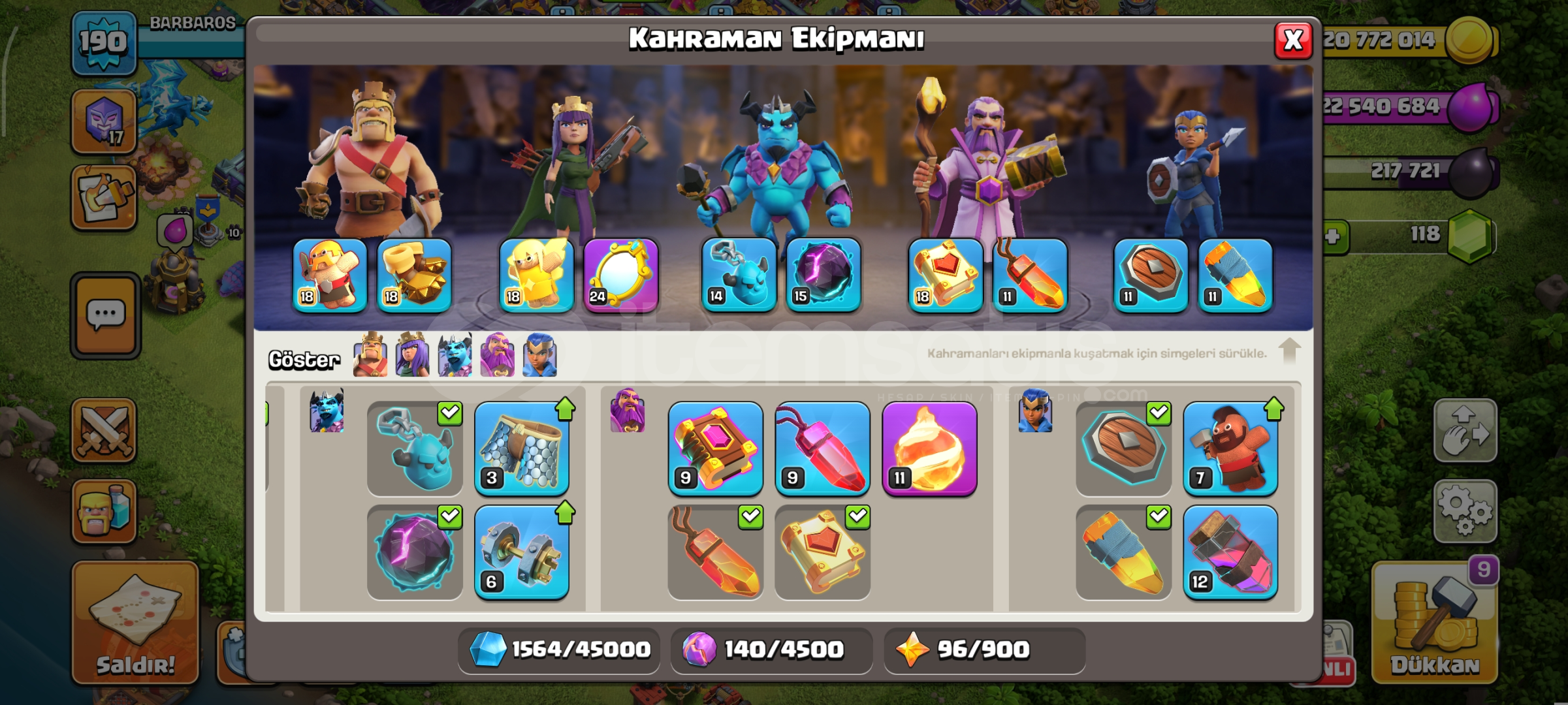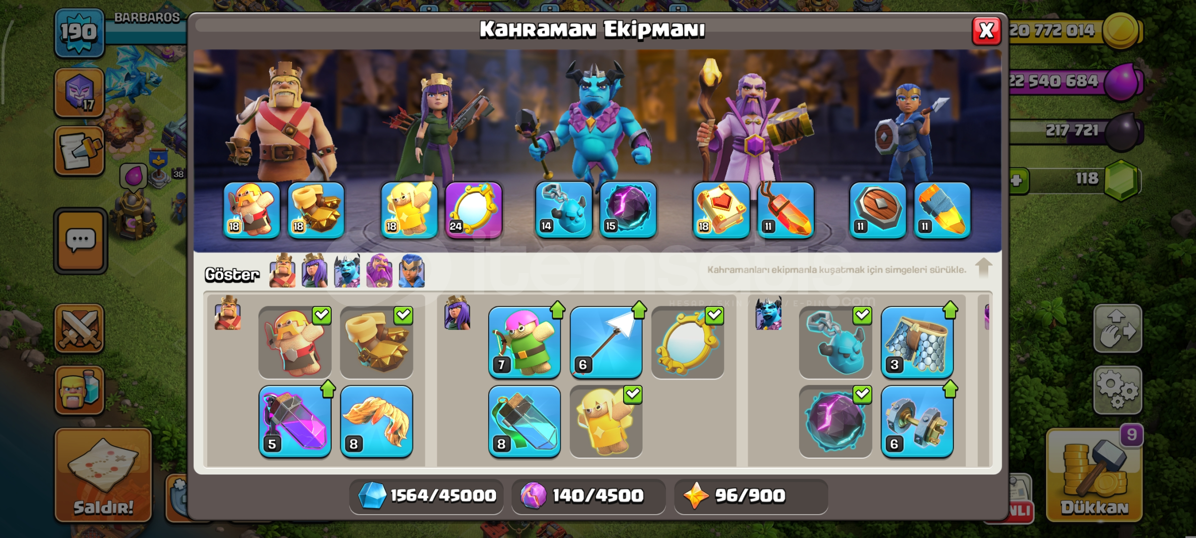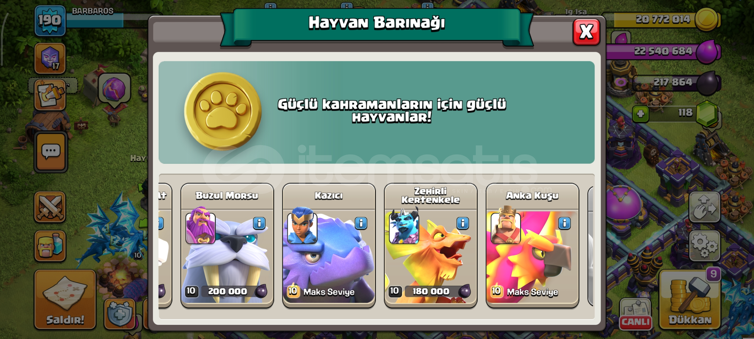 📈 DETAYLAR (Full Foto/Video DM!):• TH15 Max Civarı Köy (Hero %70 Max)• Kupa: 20.772 Masters (Atakçı Rusher!)• BB: 217-721 Kupa• Klan: BARBAROS (#BBVPQ98) - LİDER (Bonus Dahil!)• Hero: BK56 | AQ62 | GW57 | RC55• Pets: L.A.S.S.I 15 Max | Mighty Yak 15 Max | Diğer Max• Siege Max | Equip 12+ Epic (1554 Oobs)• Lab Assist 6 | Build 8 | Smuggler 3• Oobs 118+ | Clan Games Dolu💎 ARTILAR: 20k+ Kupa (Nadir!), Lider...