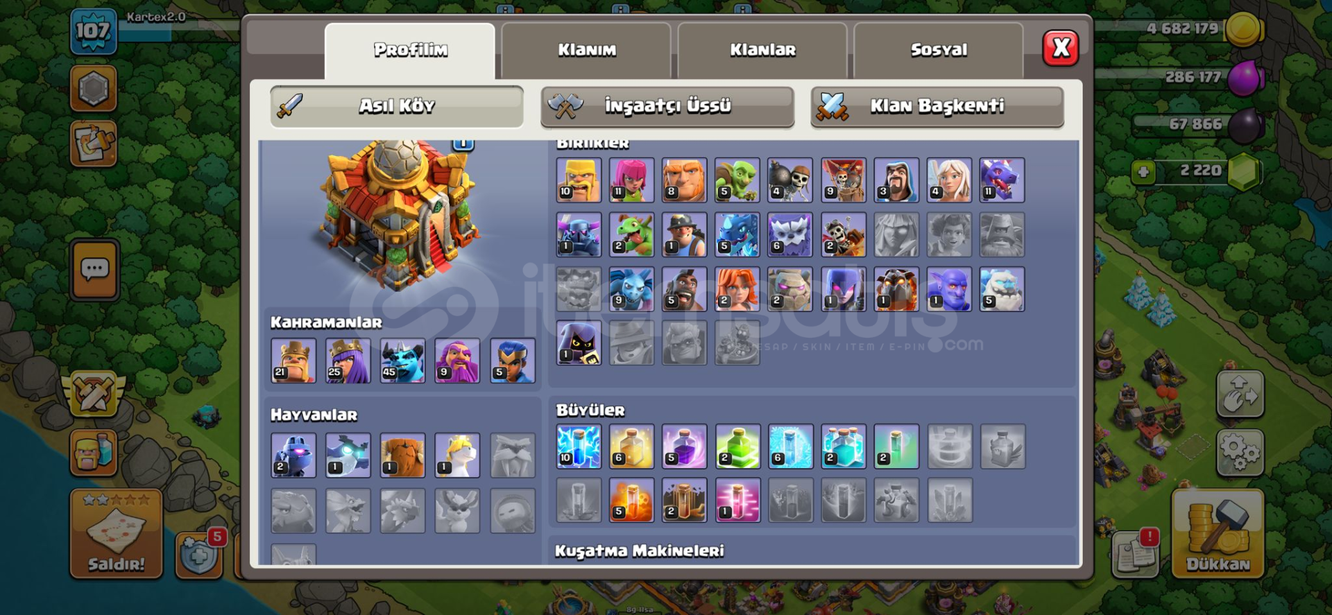 HESAP TH16 VE 108 SEVİYEDİR2200 ELMAS BULUNMAKTAAĞIR SAVUNMALAR YÜKSEK SEVİYEDİRBAĞIŞ İÇİN BİRLİKLER LEVELİ YÜKSEK60 TLLİK ALTIN BİLET TEKLİFİ VARDIR ( AS HESABINIZA YOLLABİLİRSİNİZ 200 TL İNDİRİMLİ ŞEKİLDE)3 TANE DESTANSI EKİPMAN BULUNMAKTA5 TANE BULUNAN İNŞAATÇI VARDIRİLK SAHİBİYİM BENDEN BAŞKA GİR...