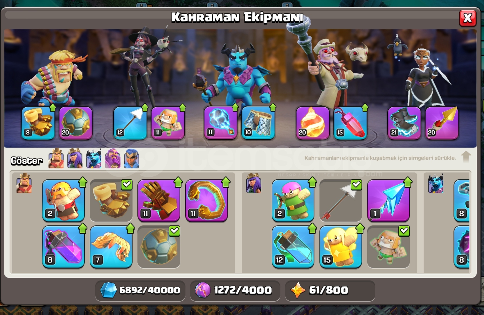 1k yakın taş mevcut isim değişikliği 1k taş zaten arka planı var kostümleride görebilirsiniz görsellerden altın bilet aktif Kahraman seviyesi olsun savunma olsun gayet sağlam ekipmanlar zaten çok iyi 6. İşçi var 250 Lig madalyası mevcut alana hayırlı olsun