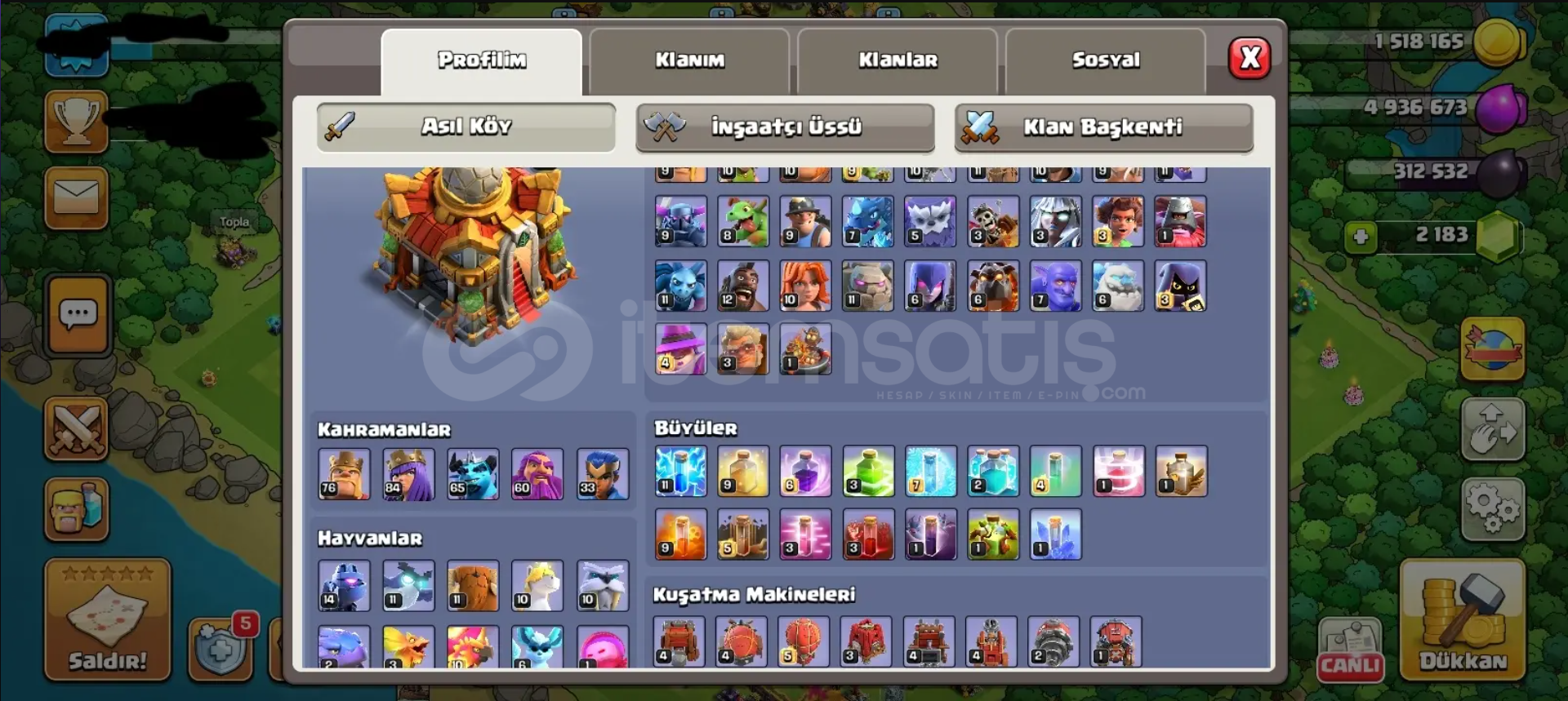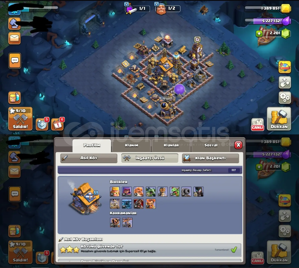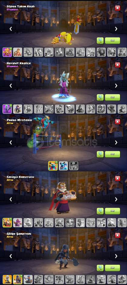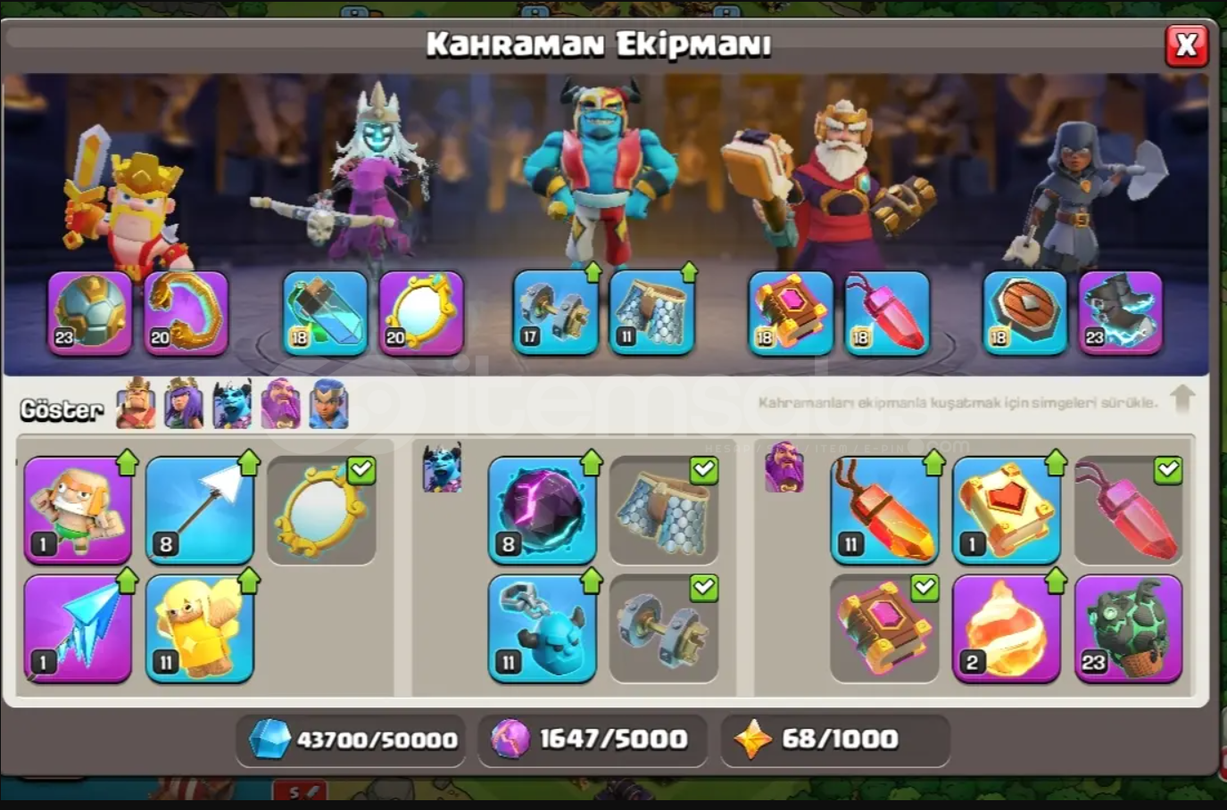 TH16 Maxa Yakın Köy 17 Geçilecebilir, Sadece Tuzaklar Kaldı. Her Heroda 1 Kostüm Bulunmakta. İsim Değiştirme 500 Taş. Kahraman Atolyesinde Sadece Dev Eldiven Alınmadı, Diğer Bütün İtemler Mevcut. 2200+ Yeşil Taş. Hesap Koruması Kapalı, E-posta TemizDirekt Olarak E-posta İle Verilecek.