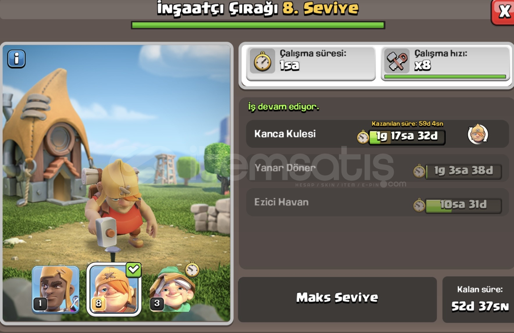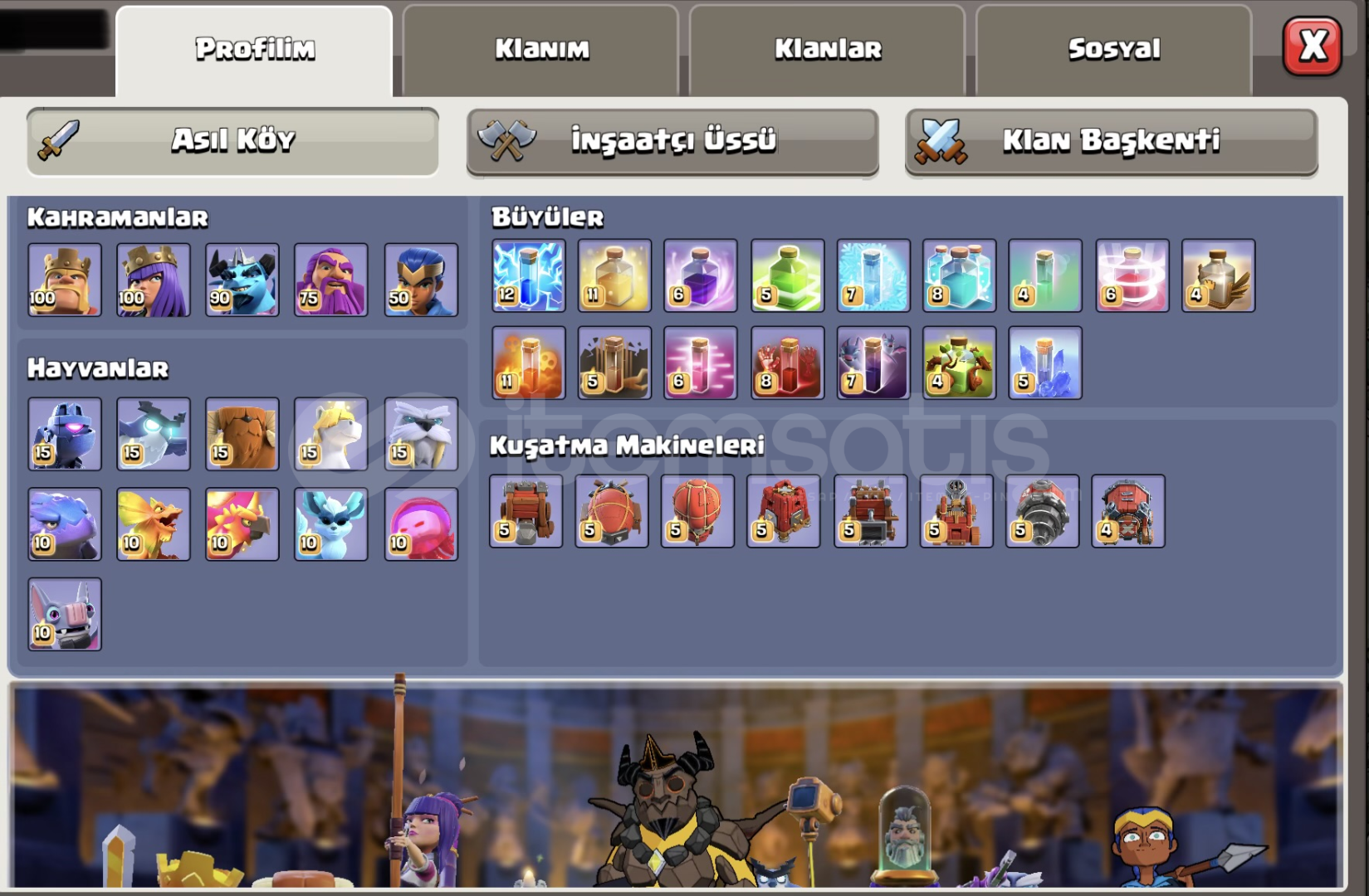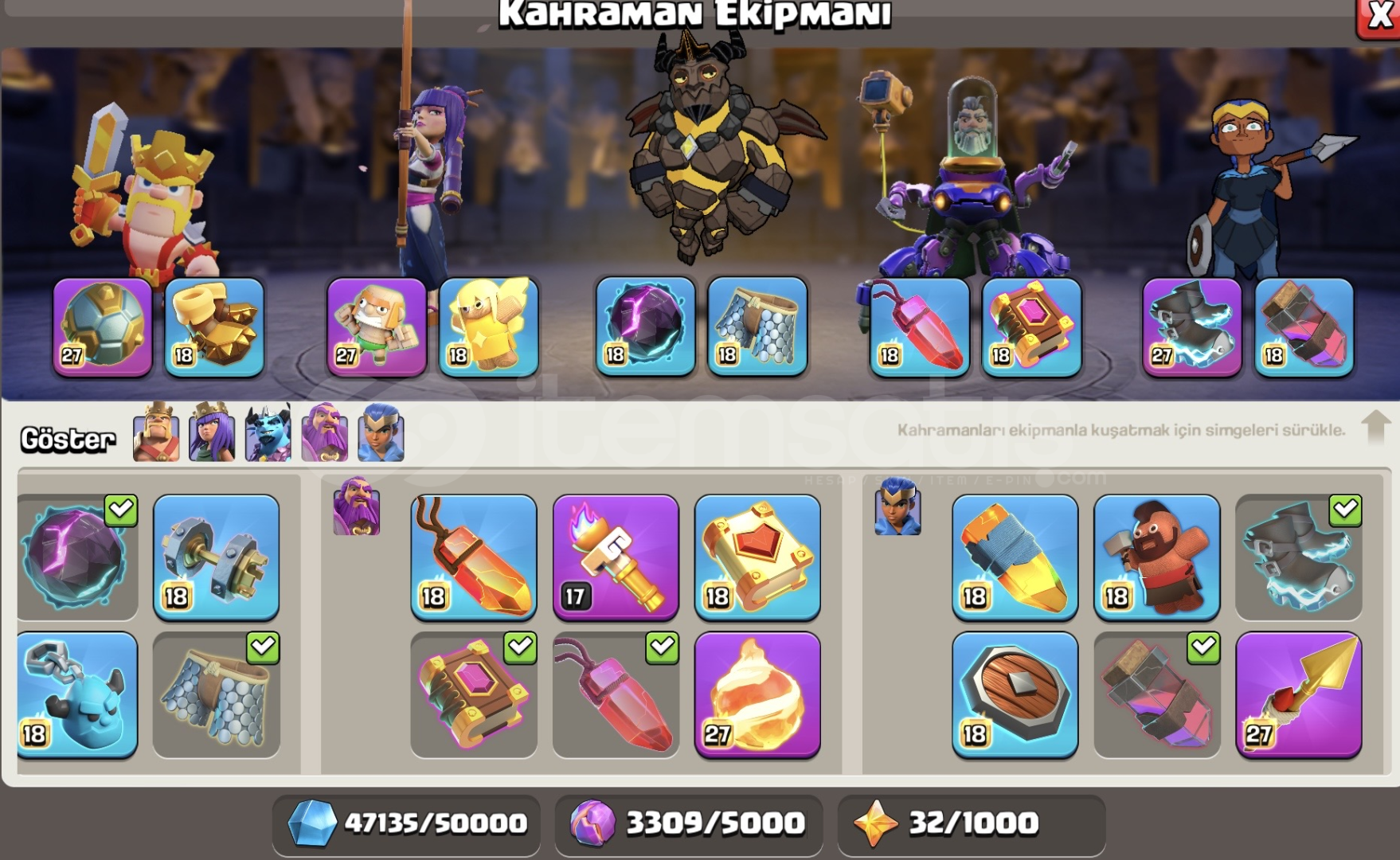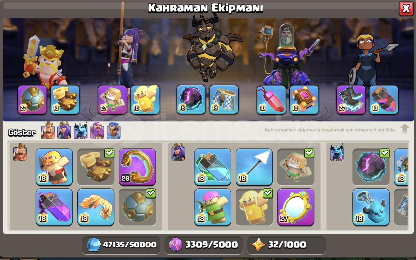 HESAP MAX DURUMDADIR MAİL ŞİFRE DEĞİŞİYORİNŞAATÇI KÖYÜ MAXYARDIMCI DEMİRCİ 8MAX SEVİYEYARDIMCI SİMYACI 3 SEVİYEYARDIMCI ASİSTAN 1 SEVİYEEKİPMANLAR:BARBAR KRAL MAXDİKENLİ TOP : MAXDEPREM ÇİZMELERİ: MAXBARBAR KUKLASI: MAXÖFKE ŞİŞESİ: MAXVAMPİR BIYIĞI: MAXYILAN BİLEKLİĞİ: 26 SEVİYEOKÇU KRALİÇE ...