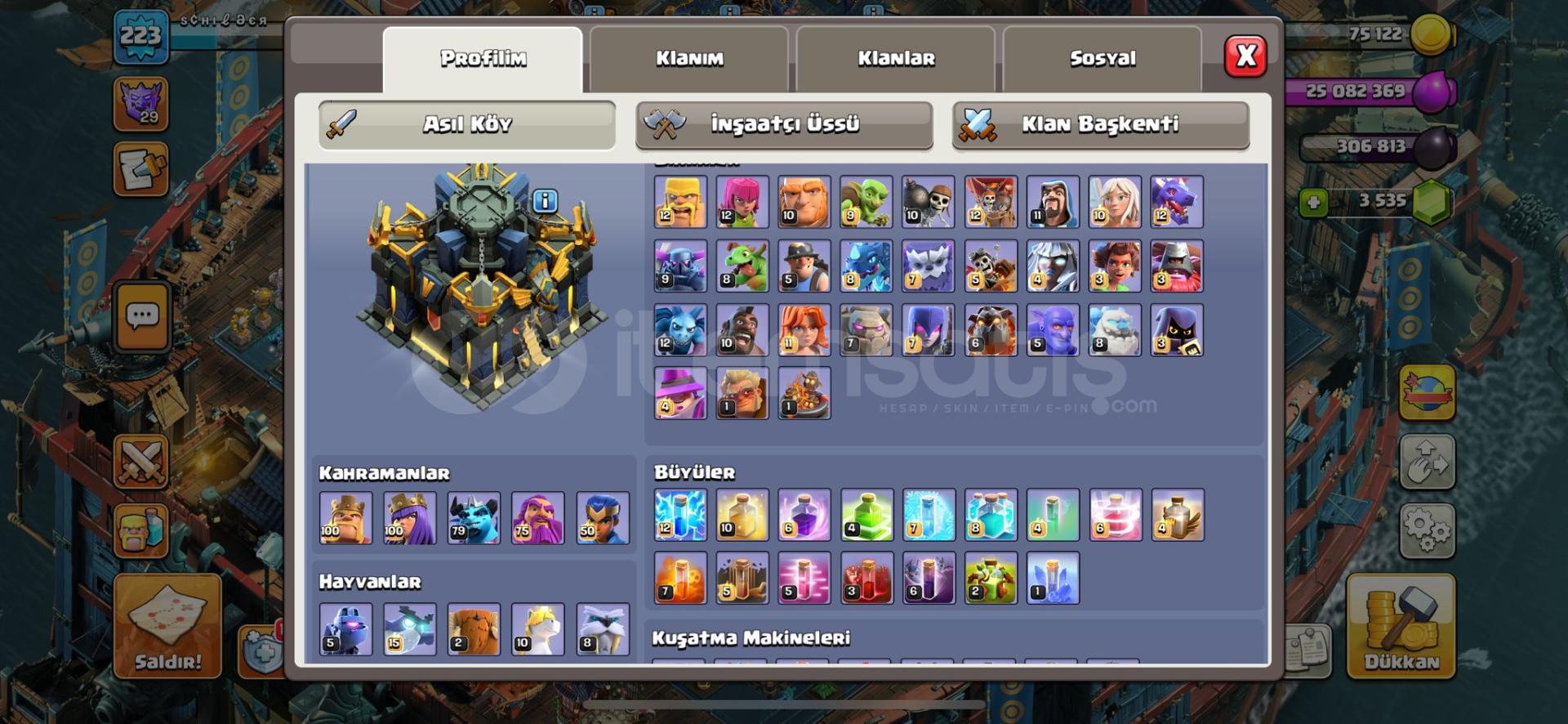 TH17 FULL+MAX 2.ŞARJLAR BİTMEK ÜZERE 3535 TAŞ. 1102 LİG MADALYASI FULL BÜYÜLÜ ÖGELER- KAHRAMANLAR MİNYON HARİÇ MAX ALICISINA HAYIRLI OLSUN