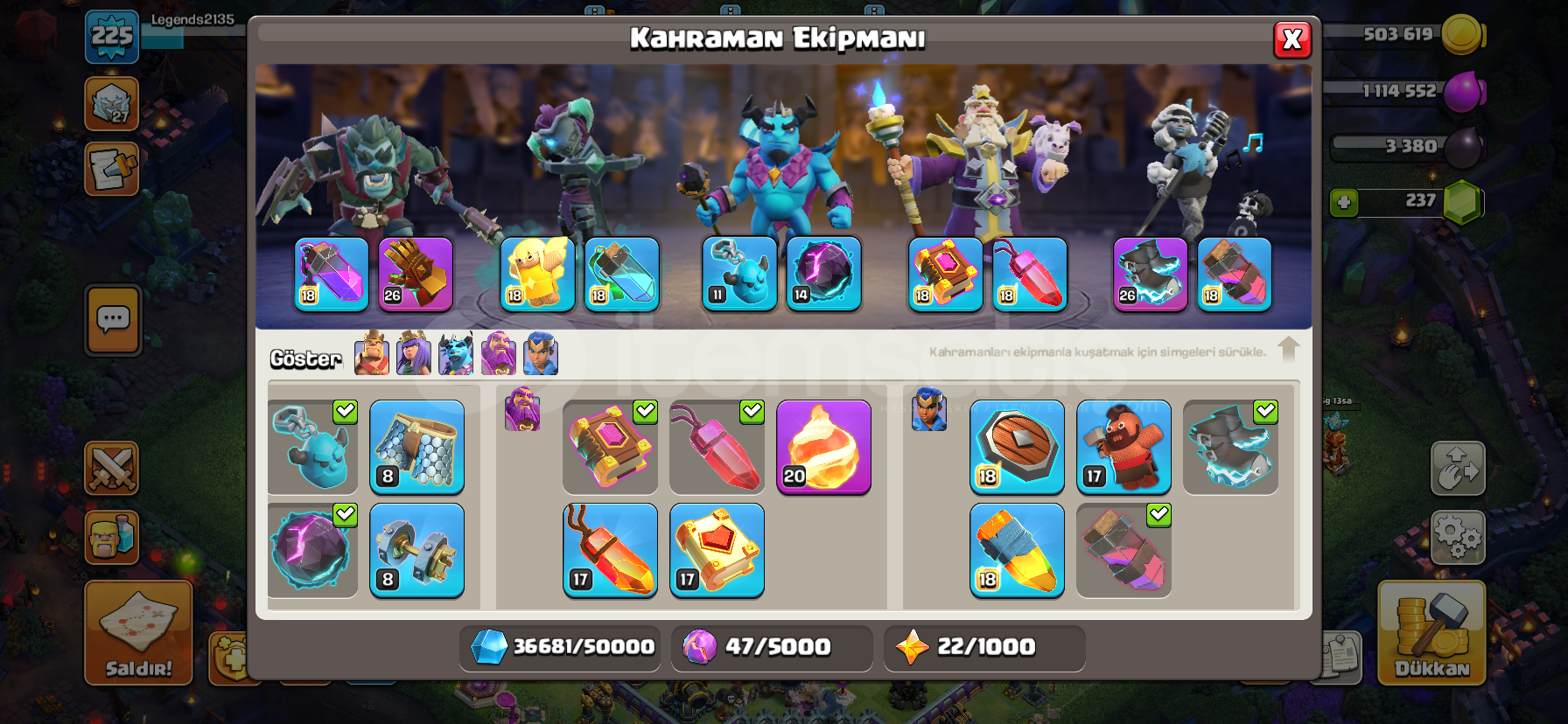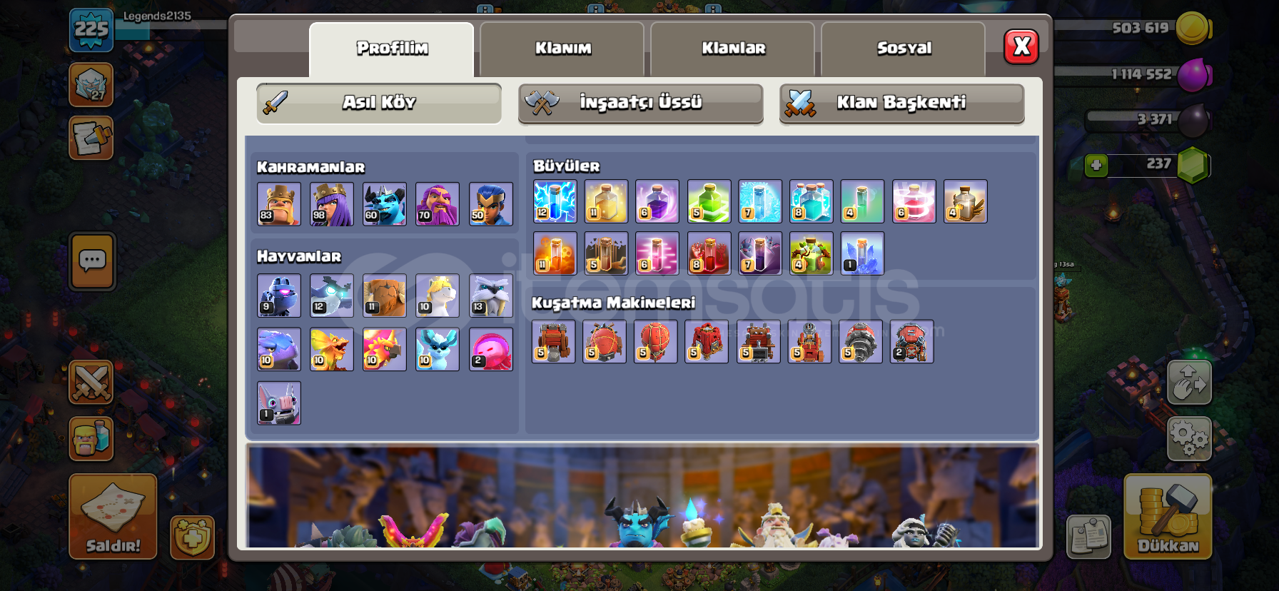 🟢 Ana köy: %90 max — yalnızca 1-2 seviye eksik bina / büyü / kahraman mevcut
