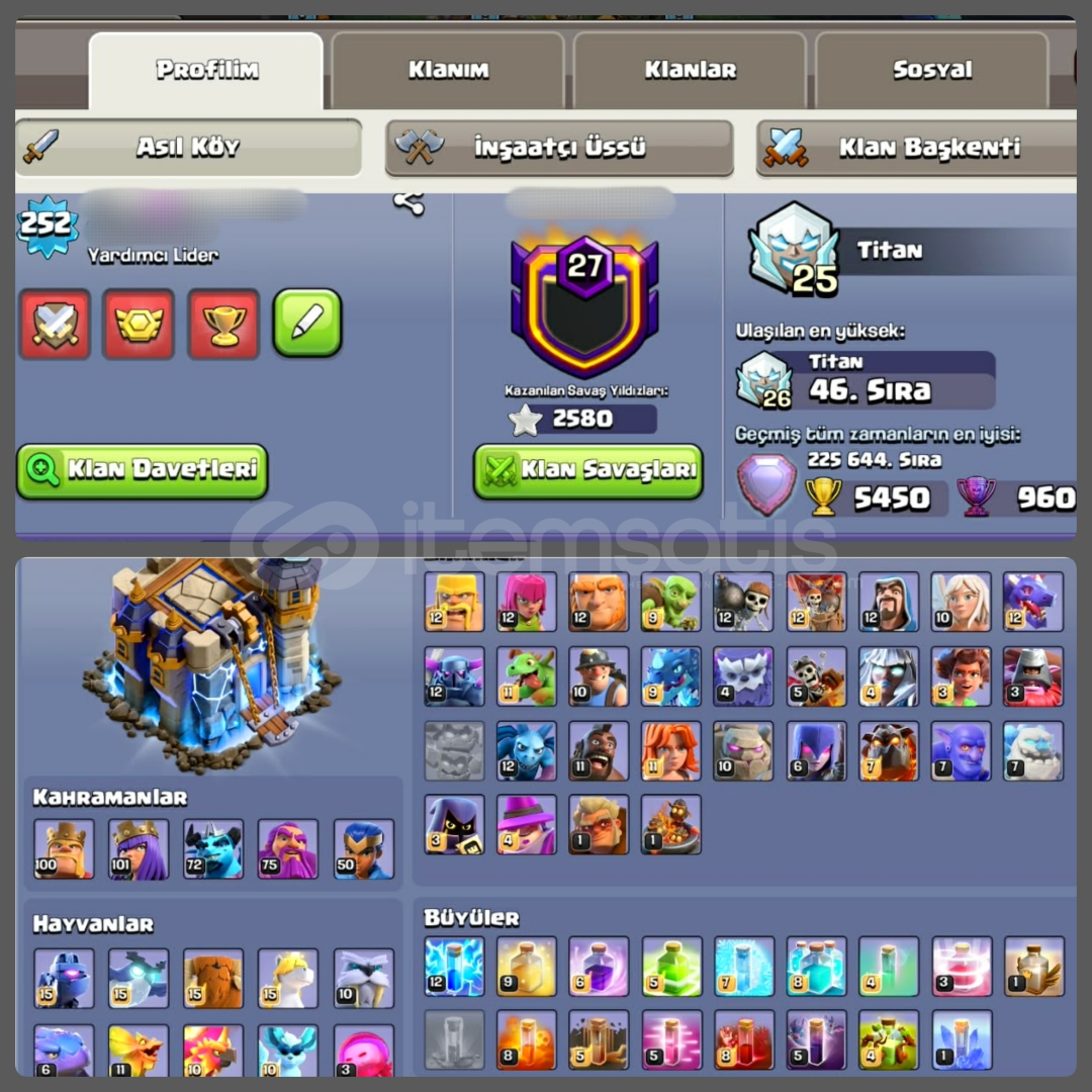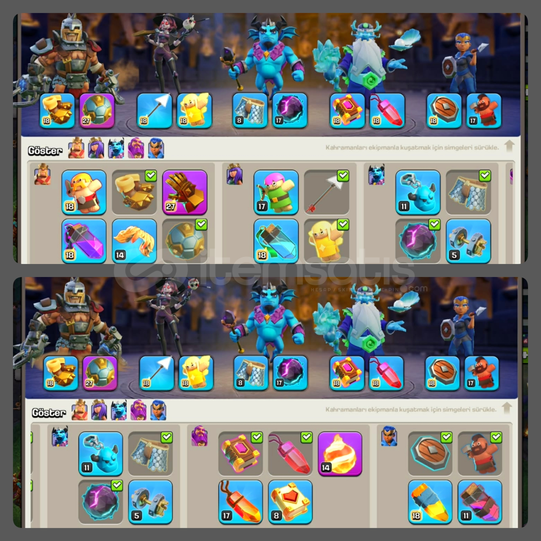 th17 max olarak th18e geçmiştir.Yan köy maxtır.2500 ks yıldızıHesap istediğiniz maile bağlanacaktır.Bütün cihazlardan çıkış yapilip size verilecektir.İstediğiniz e postaya bağlanır.