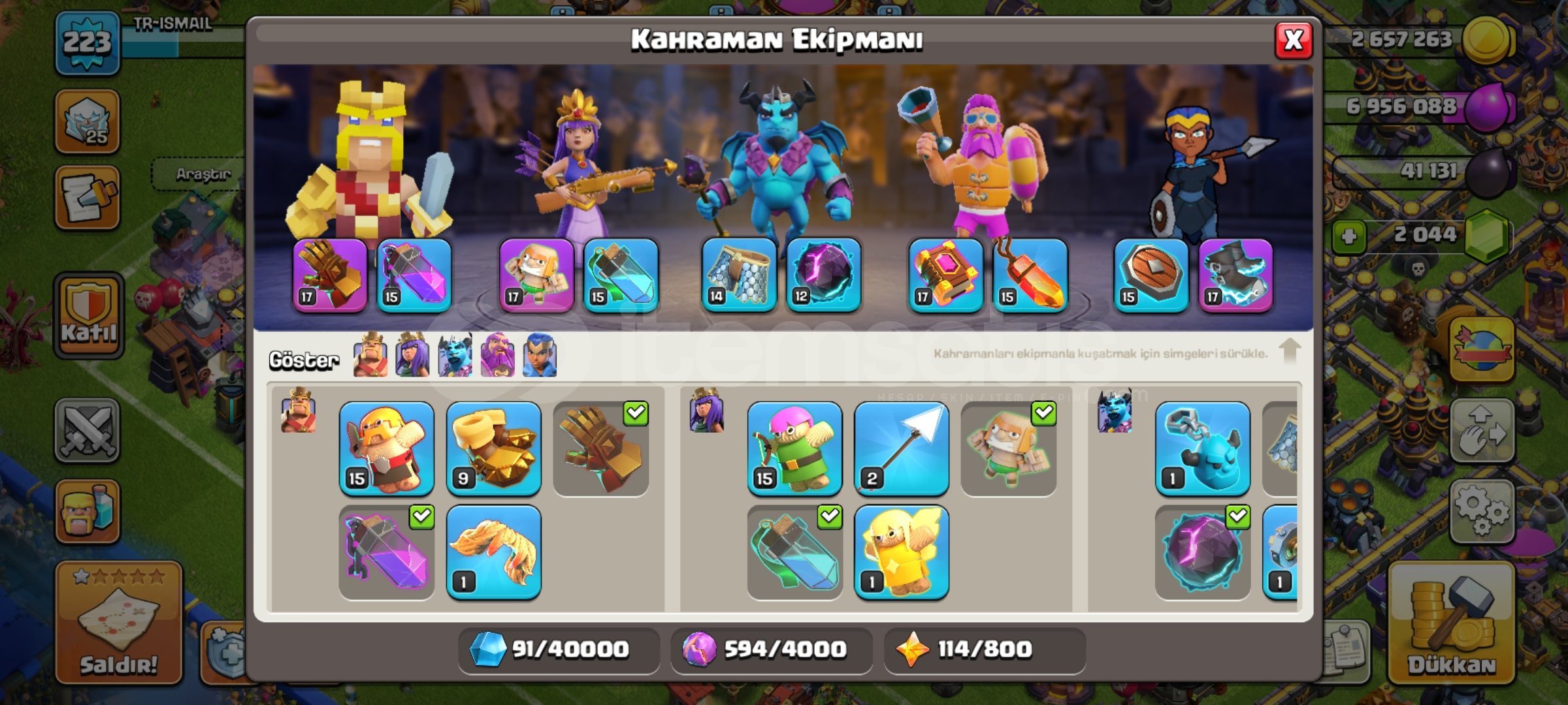 Th 17 duvarlar max 2k elmas var herolar iyi durumda savunmada sadece bi kac eksik var 1 arka plan 5 kostüm mevcut
