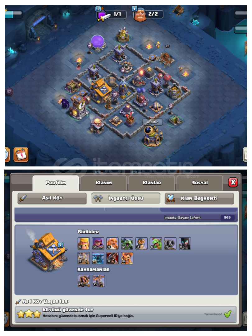Hesap Hakkında????Th17 Hesabım Duvar Dışı Yarı Maxtır.????+6Kostüm4Arka Plan Bulunmaktadır.????1515 Yeşil Taş.940 Lig Madalyası 1710 Savaş Yıldızı 203 Seviye???? Dikenli Top,Dev Eldiven,Donmuş Ok,Aksiyon Figürü,Ayna,Elektro Çizmeler, Roket Mızrak????Yan Köy Orta Düzeyde6.İnşaatcı Alınmıştır.????Aktif Olmasam Bile Alabilirsiniz Anında Aktif O...