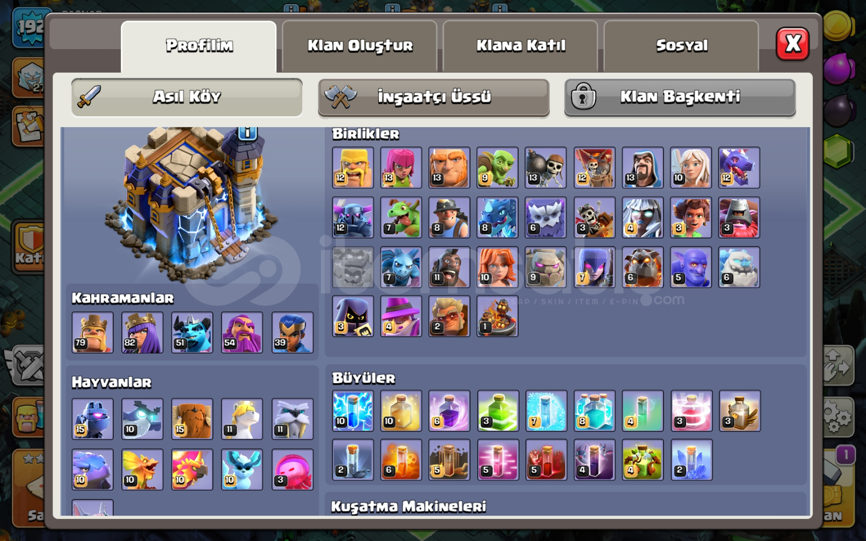 Detaylar;TH 18 Yarı Max14 kostüm3 Arkaplan800 Taş6. İnşaatçı MevcutturDuvarlar MaxtırHesap Ekipman Bakımından Sitenin En İyisidir.Teslimat;Hesap Bağlı Olduğu Gmail İle Birlikte VerilecektirGmail Boştur Sadece Coc Hesabı Vardır