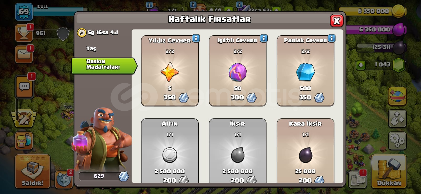 TH9 12Madalya 1043Elmas Ganimet Ekipmanlar