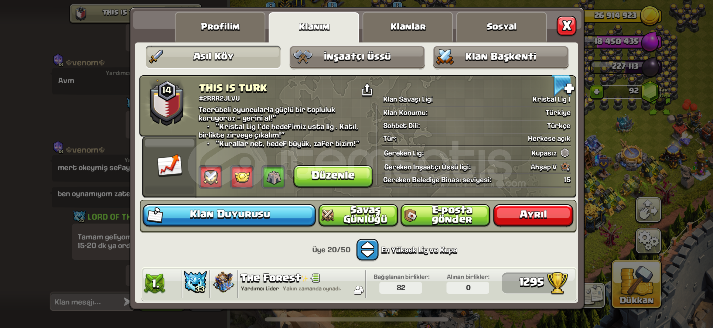 This is Türk Klani 15 e az kalmis kristal 1 liginde başkent 10 sv maxa çok yakın