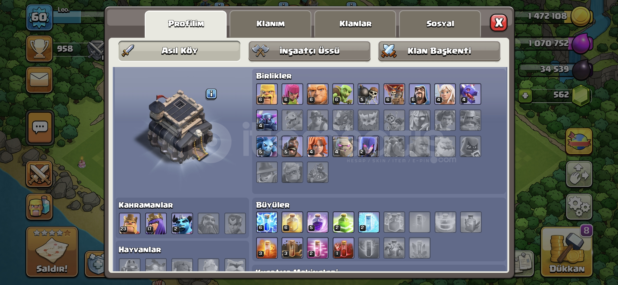 💫Th9 Max'a çok yakın Clash of Clans hesabı