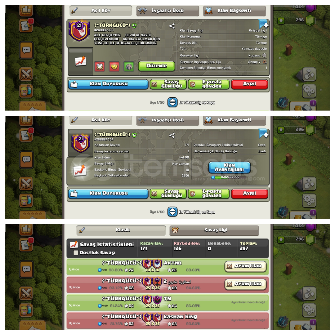 %100 MEMNUNİYET | 1 DAKİKADA TESLİM ⏳|10/10 DEĞERLENDİRME PUANIAÇIKLAMAYI LÜTFEN SONUNA KADAR OKUYUNUZ !HESABIN EK ÖZELLİKLERİ ⚡️ ✨21 Level Klanım • {~TURKGücü~}• Harika Savaş Günlüğü• Usta Ligi lll Savaş Ligi• Başkent Seviyesi 10• Başkent Yükseltmesi • Görsellerde Belirtilmiştir.• Alıcısına Hayı...
