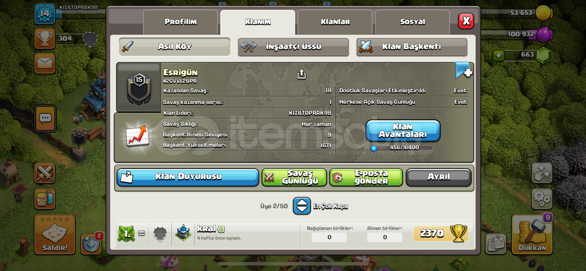15 sv başknet 9 usta 1 ESRİGÜN isimli mükemmel klanım satışta