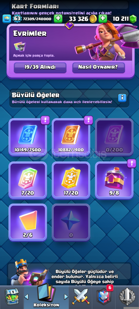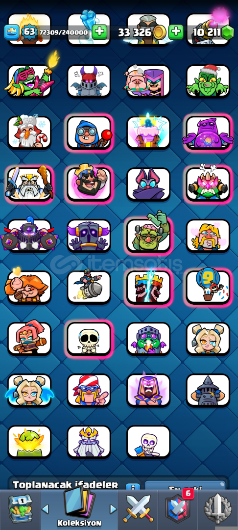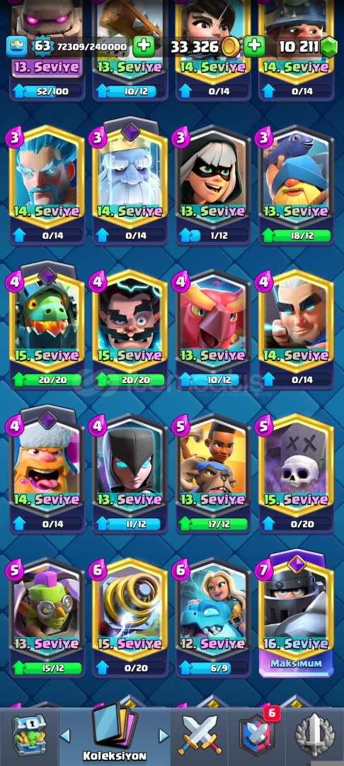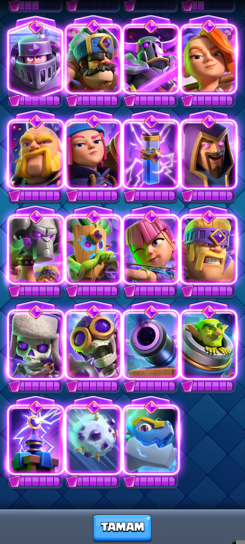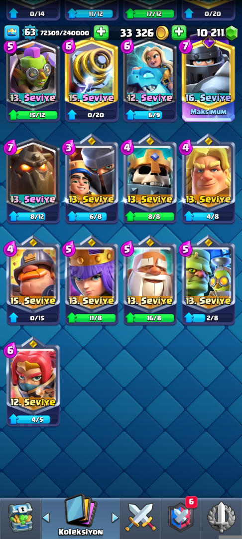 Hesap 15 bin kupa 19 evrim var ve diğer evrimlerimlerin bir iki parçaları bulunmaktadır çogu kartlar seviyesi yüksek hesapla beraber klanda veriliyor ifadelerin çogu var 6 yıllık bir hesap 10 bin de taş mevcutur her hangi bir sorunuz olursa yardımcı olmaya çalışırım TESLİMAT SÜRESİ 1 SAAT DEN KISADIR