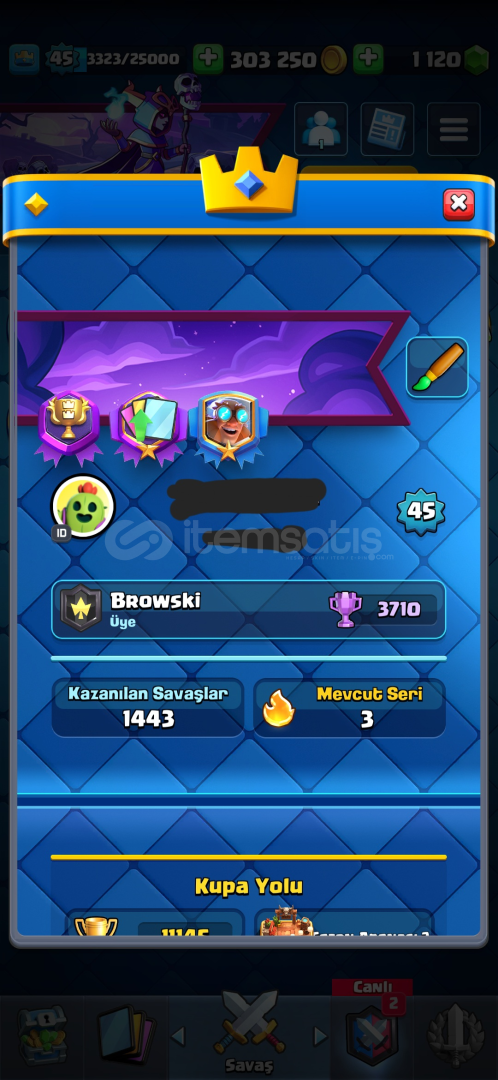 KUPA VE LİG BOOSTLANIR MESAJ YAZ!+13000 KUPA ✅️EN UCUZ FİYAT EN YÜKSEK BOOST ✅BOOST BİTİNCE HESAPTAN ÇIKIŞ VİDEOSU ATILIR ✅GÜVENİLİRLİK ✅TEMSILI ILANDIR MESAJ ATIN✅️NOT🔔:Boost için bana boost yaptırmak istediğiniz hesabın İD sini atın ve ne kadar kupa ve ya lig boostlanacağını söyleyiniz