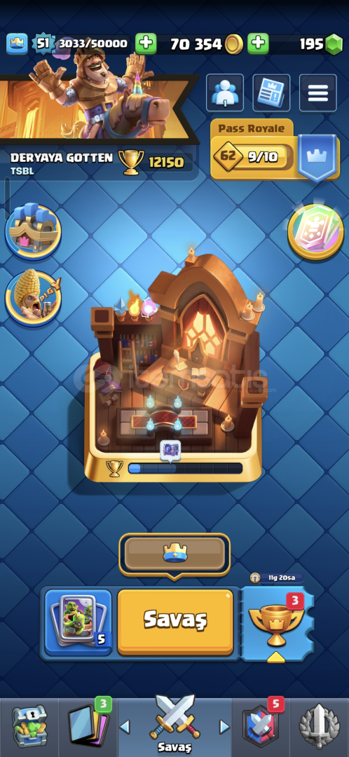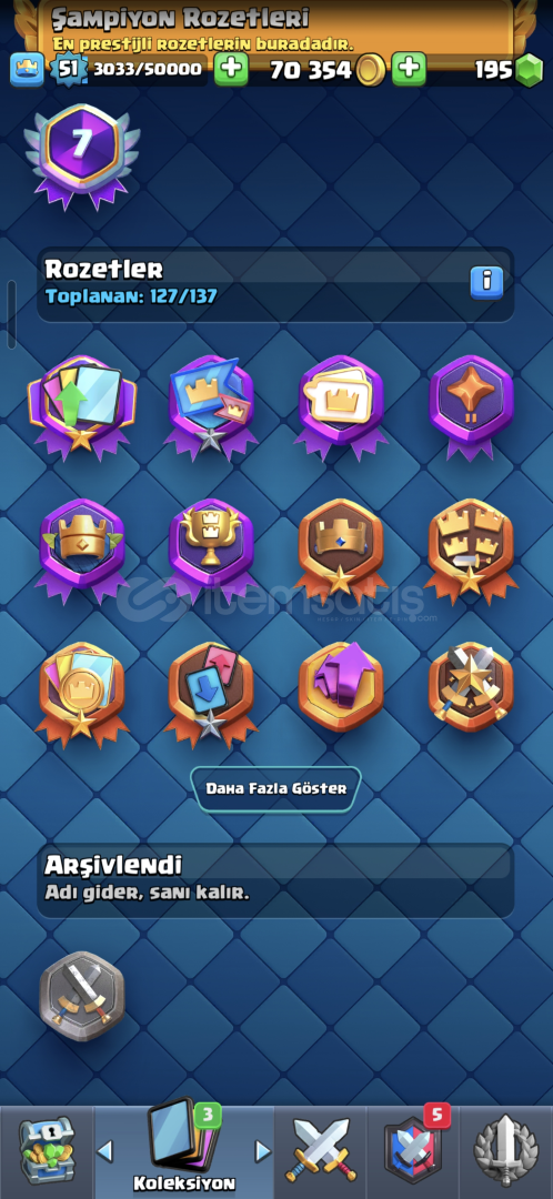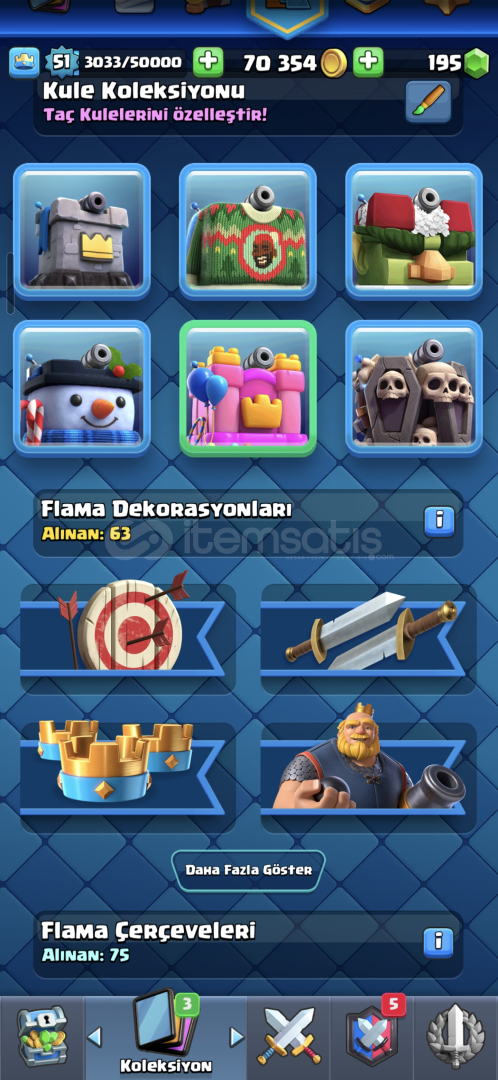 Hesapta toksik emojiler bol. 66 emoji bulunmakta. 2 sıradanlaştı kitabı ve 1 destansı kitabı ve bolca joker kart var seviyeleri güzel fena değil oldukça 14 seviye var. 13 seviye de fazlalıkta. nadir unvan olan klan savaşı gazisi ünvanı var ve hesap 7 yıllık güzel bir hesap. logbait destesi max