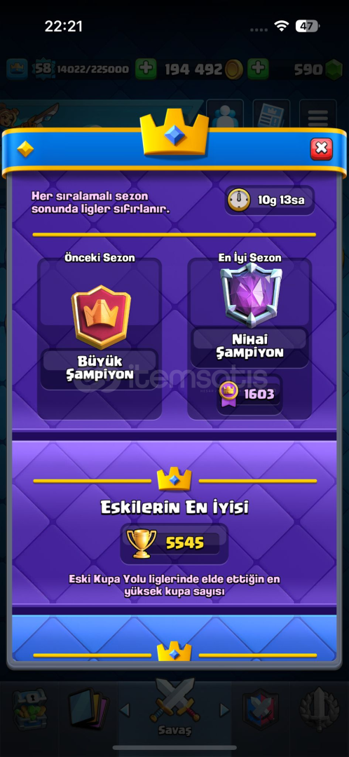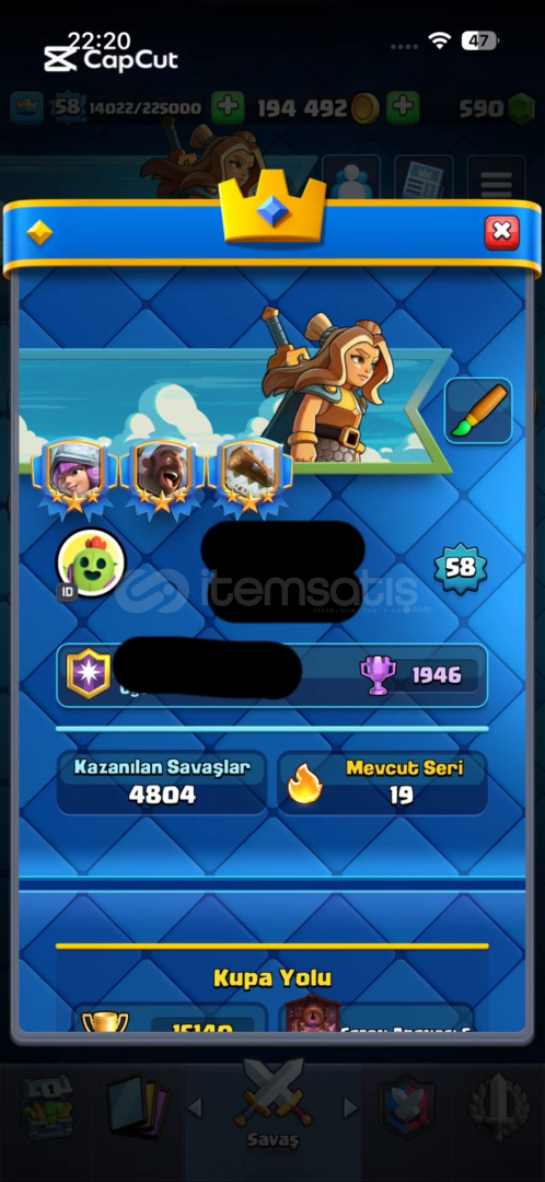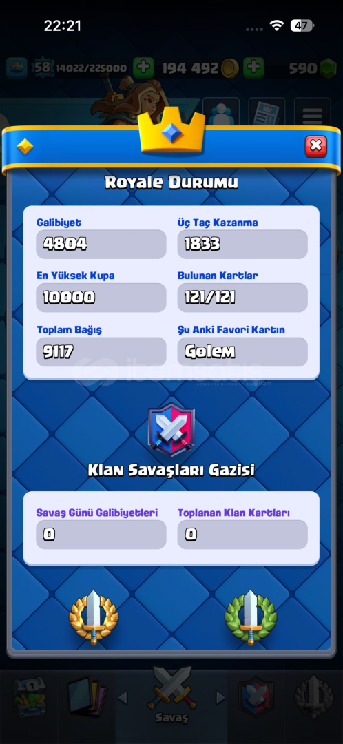 Emek hesapıdır 15 tane elit kart var14 tane 37 level var6 kule skini var133 emoji var değerli emojilerde var (bida gelmicek)4yıllık hesapnihai sampiyon gormus hesaptır 121flama var hesap gmail degistirilip verilcekhesap asla geri cekilmezhesap koruması aktif degildir siz aktif edersiniz isterseniz