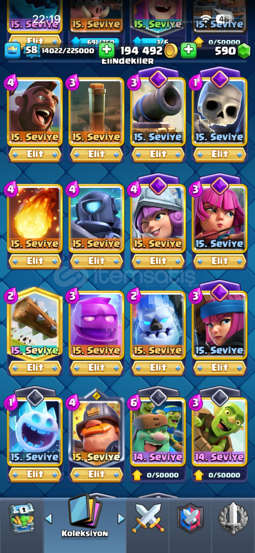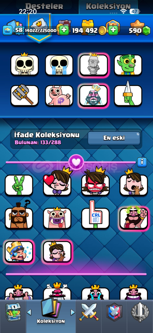 Emek hesapıdır 15 tane elit kart var14 tane 37 level var6 kule skini var133 emoji var değerli emojilerde var (bida gelmicek)4yıll&...