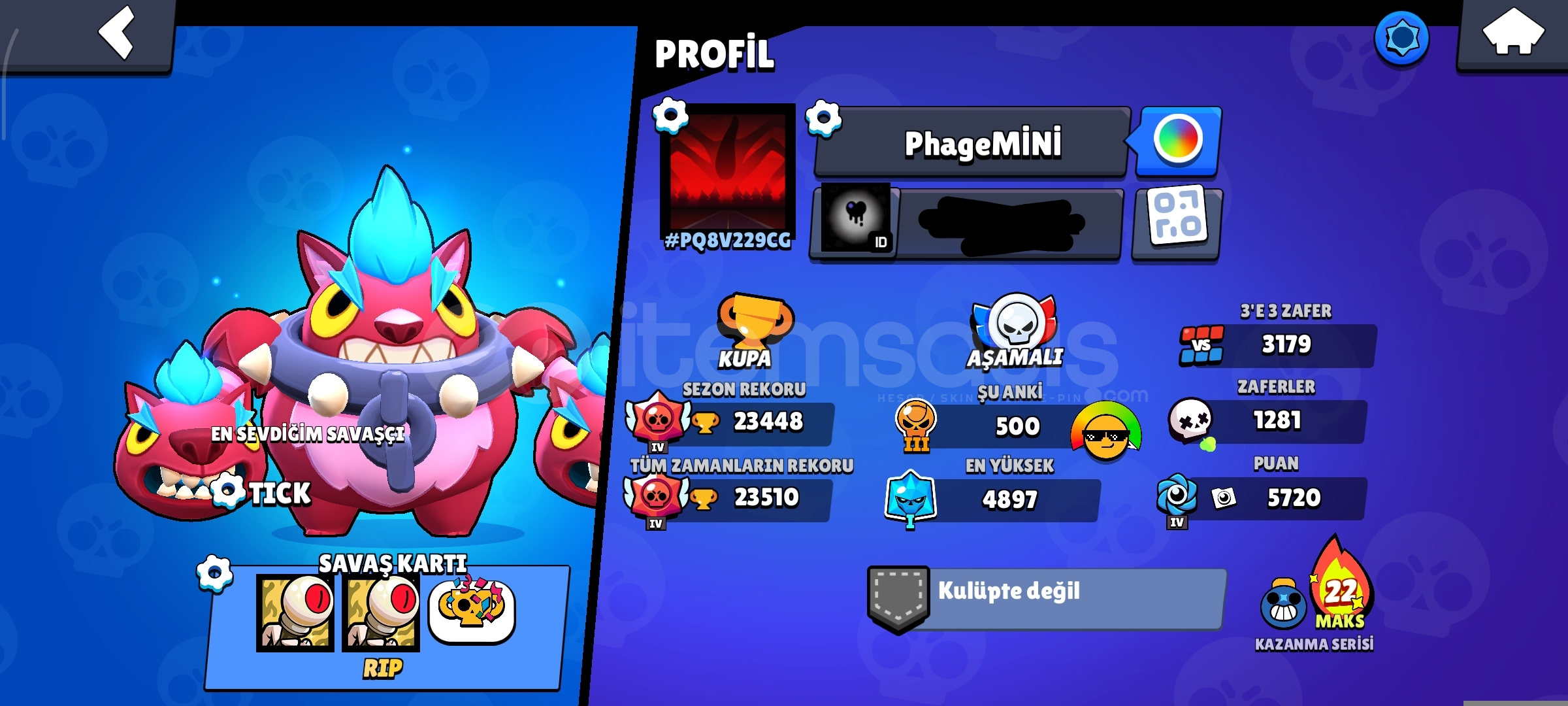 PAZARLIK YAPILIRMAİL DEĞİŞİP VERİLİROYUNU BIRAKIYORUMHEM BRAWL STARS HEMDE CLASH ROYALEEMEK HESABI SAĞLAM HESAPLARCLASH ROYALE GÜNCEL KUPA 1052057 SEVİYE 856 SIRADAN JOKER 266 ENDER JOKER4 EFSANEVİ JOKER11 ŞAMPİYON JOKER4 EVRİM PARÇASI11 EVRİM AÇIK2 TANE 16SV212 ELMAS132K ALTIN40 KAHRAMAN PARÇASI_________________________BRAWL STARSGÜNCEL KUPA 2344852 ENDER KOSTÜM 35 SÜPER ENDER ...