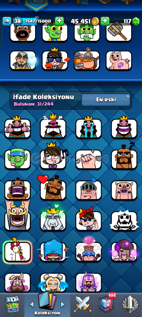 Çok fazla toksik emojiTokmak emoji115 kart acıkır 8500 kupa9 tane evrim80 den fazla flamaPazarlık vardır