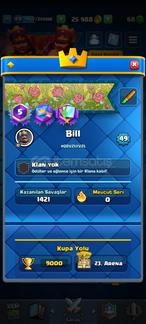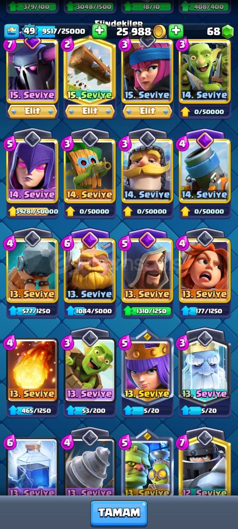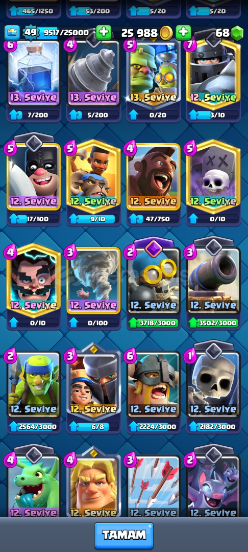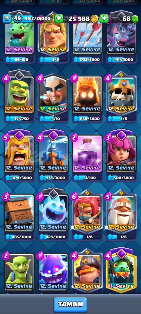 10 EVRİM 3 ELİT 49 SEVİYE 9000 KUPA MÜKEMMEL CR Hesap temizdir koruma etkin değil mail değişiyor Hesabı inceleyebilirsiniz: #Q8V2LYV2L