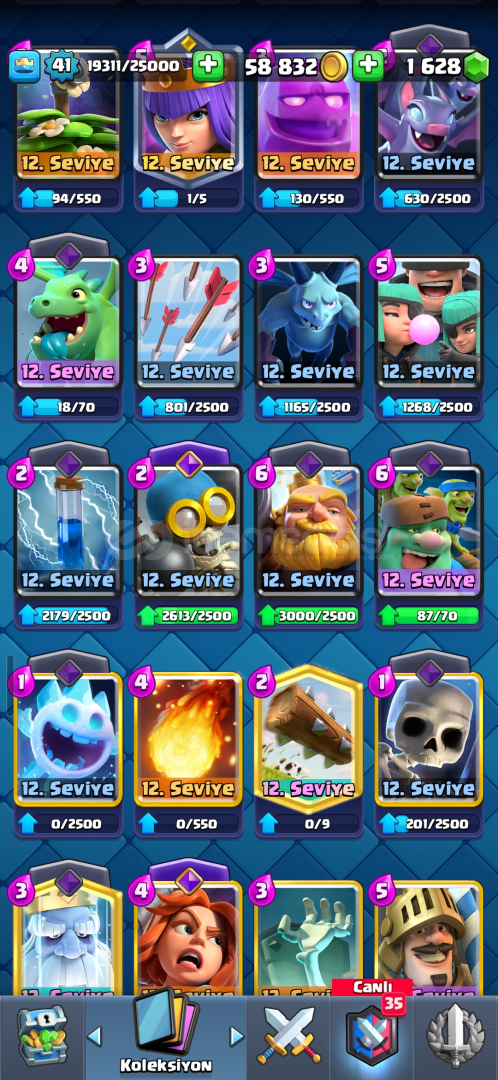 10 EVRİM 7624 KUPA CLASH ROYALE HESABI SATILIK