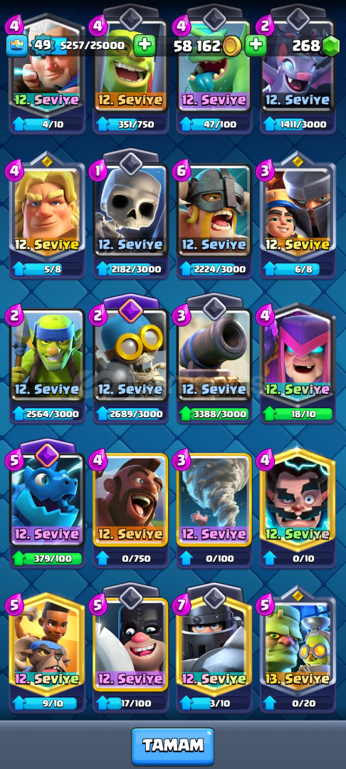 10 Evrim 9k kupa 49 seviye mükemmel clash royae