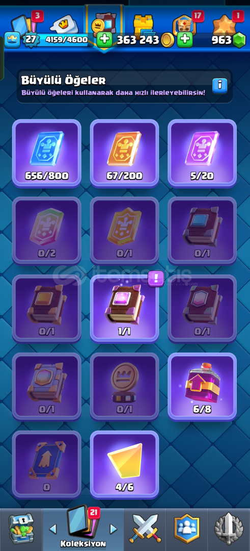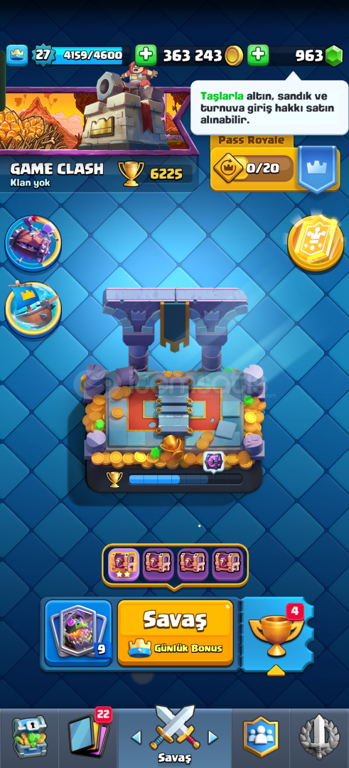 ⭐[1000 Taşlı]6250 Kupa Bol Rozetli Hesap⭐