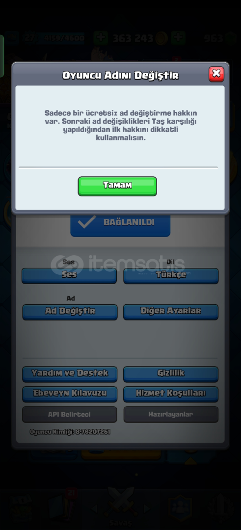 Hesabın ismi ücretsiz değişir.Hesabın supercell id ismi ücretsiz değişir.İlanı aldığınız zaman hesabın gmail ve şifresi Otomatik Olarak size gelecektir.Hesap teslim edildikten sonra hesaptan çıkış videosu atılır.Hesabın telefon koruması yoktur.
