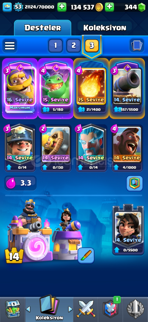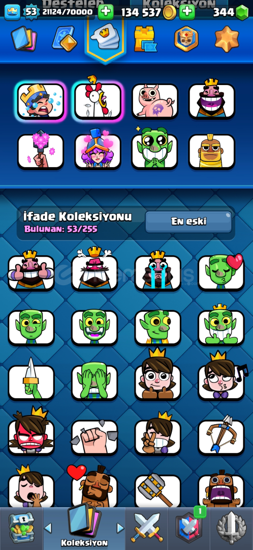 Öncelikle alıcısına şimdiden hayırlı olsun.Hesapta tüm kartlar açıktır.Hesapta toplam 53 ifade mevcuttur ve nadir emojilerde vardır.Hesapta 16 seviye sadece şövalye vardır.genel olarak seviyeler 11 ve üstüdür.5 kule görünümü vardır.69 flama mevcuttur.73 flama çerçevesi mevcuttur.Hesapta 10 adet evrim açıktır.3 yıllık emek hesabıdı...