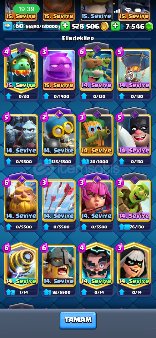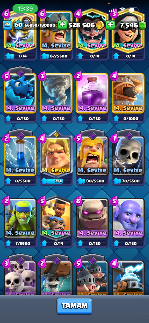 8yıllık hesap kartların birçoğu 14-15level dir evrimler mevcut 8bin elmas yüksek kupa emek verilmiştir ciddi al...