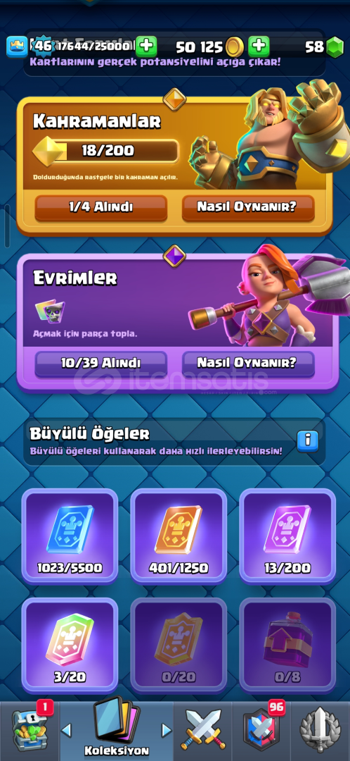Acil satılık 10 evrim 10000 kupa 46 seviye uygun hesap henüz bi hesaba bağlı değildir alıcının mailine direk bağlanacaktır