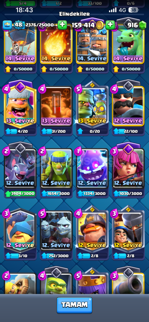 48 level ana kule 14 goblin fıçısı fişekçi valkür 15 evrimler fotoda var emek hesabı