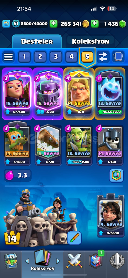 • Hesabın main deste nerdeyse maxtır. (Çoğunlukla 15)