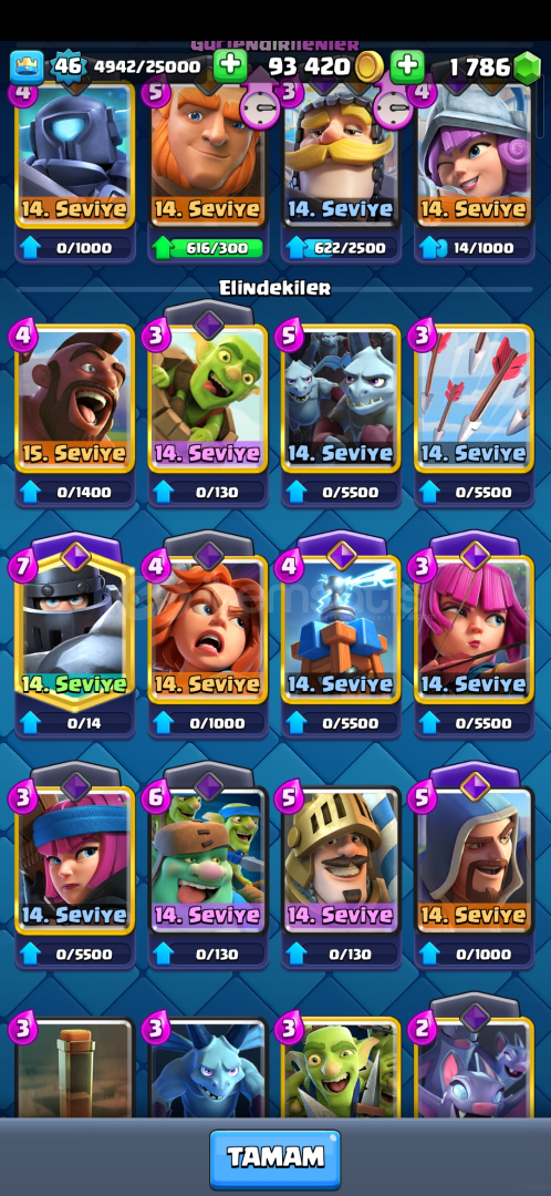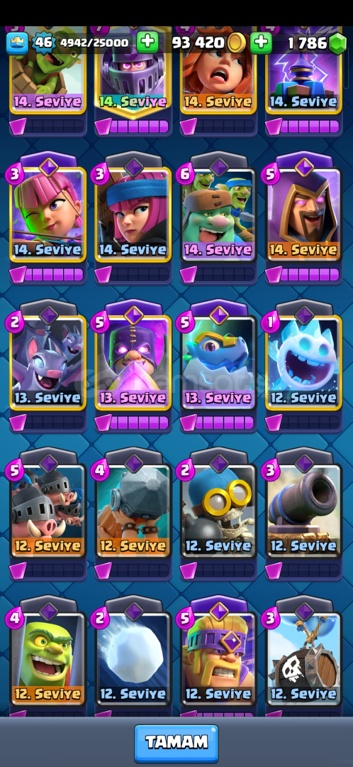 10.000 kupa🏆1.786 taş🟢993.400 altın🪙46 seviye🔷️7 evrimli🫟Kasmalık uygun hesap. HIZLI VE KOLAY TESLİMAT ✅️