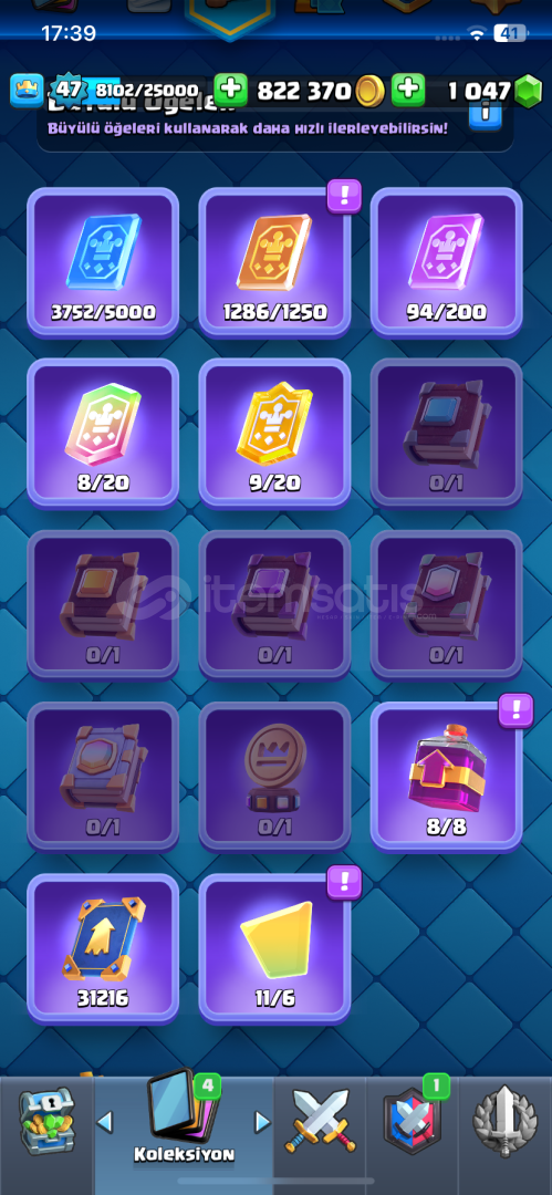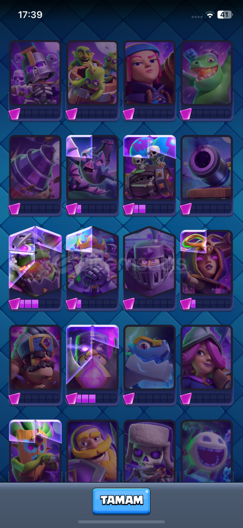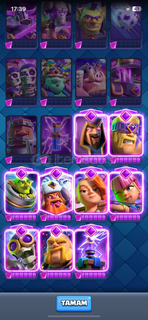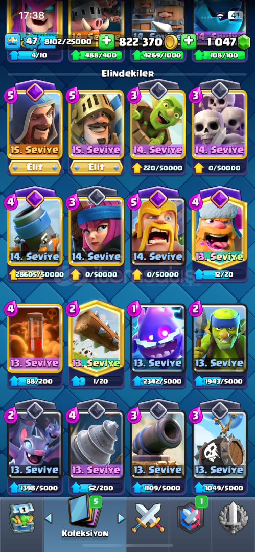 10.000 kupadır1k elmas vardır1 milyona yakın para vardır47 leveldir2 elit kart5 tane 14 lvl vardırbütün kartlar vardır9 tane evrim vardır11 tane evrim parcası vardır 2 tane evrim rahat acarsınız31k elite kart vardır9 şampıyon jokeri8 efsanevi jokeri vardır6 tane kule görunumu vardır48 emoji varıdrhypnos cr tokmak vardırotomatik şekilde aktif olmasam da size hesap teslim edilcektir hesap ...
